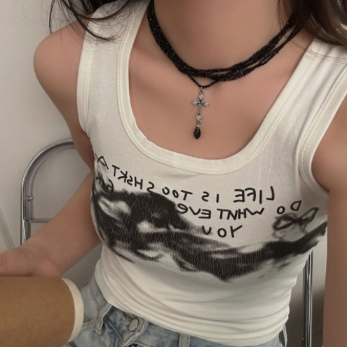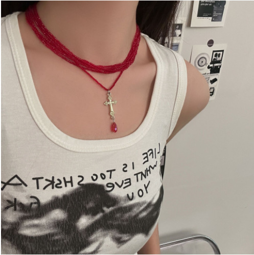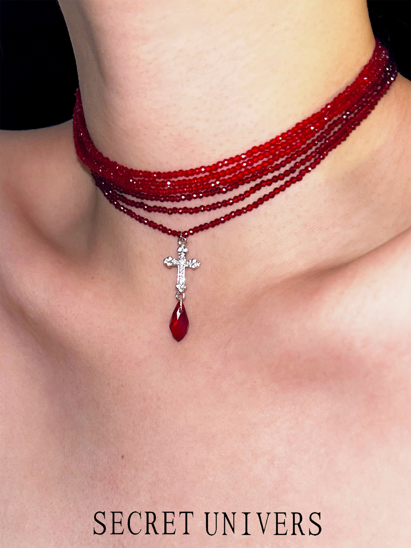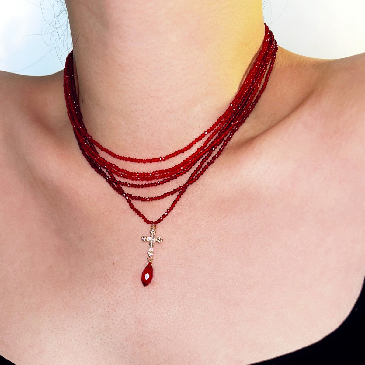 Элитное колье-чокер "Кросс" красного цвета, французский ретро-стиль, цепочка на ключицу, женская новинка 2025 года