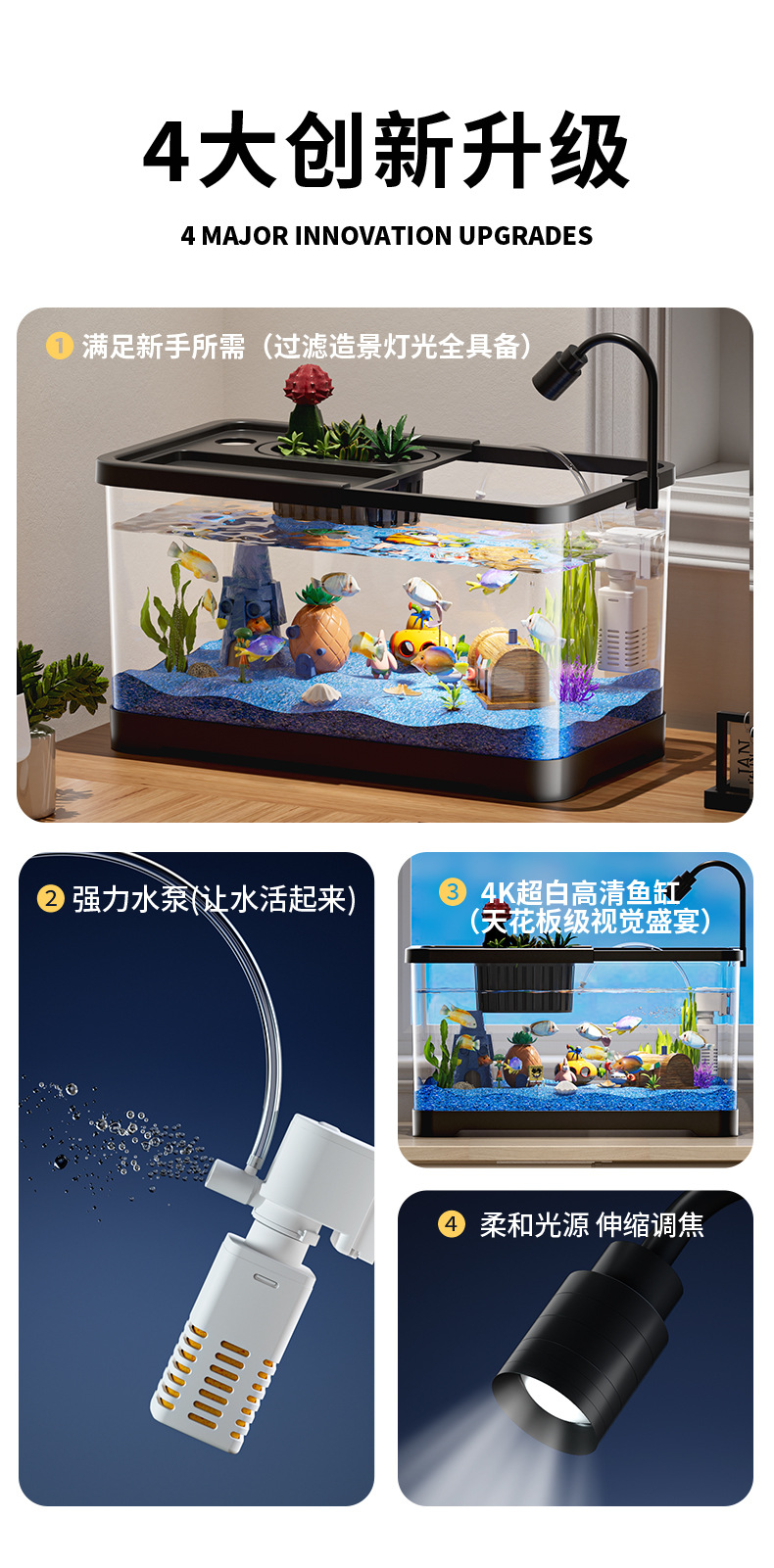 Аквариум, небольшая гостиная, домашний ландшафтный дизайн, полный набор экологического водяного резервуара, вертикальный безводный резервуар с крышкой, прозрачный, для ленивых, выращивающих золотых рыбок