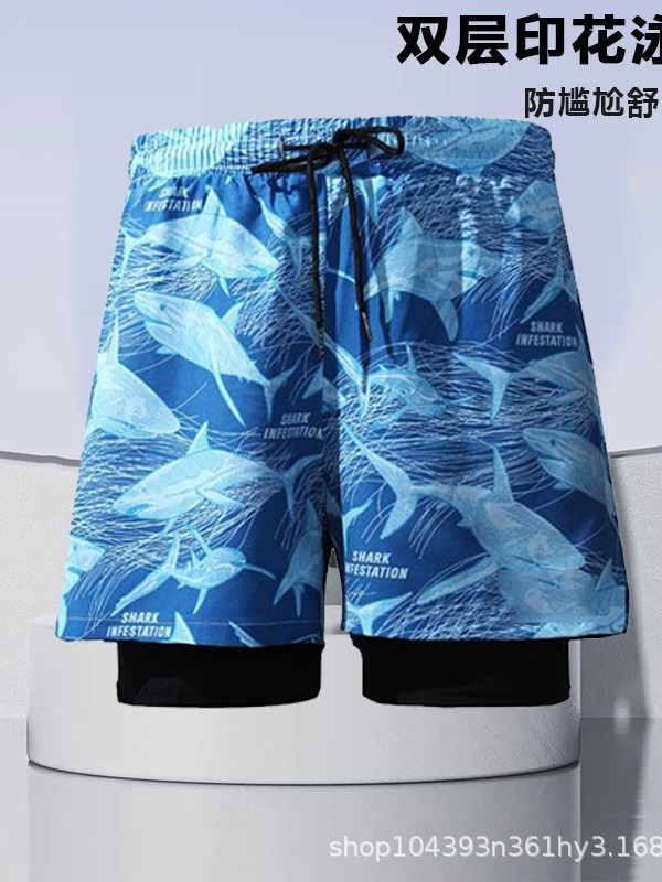 Мужские плавки, защита от смущения, свободные, большого размера, быстросохнущий купальник, мужские пляжные брюки, плавательное снаряжение с двухслойной подкладкой для горячих источников.