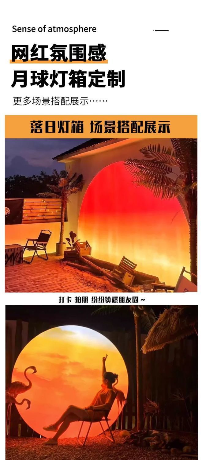 Модный световой короб с закатом, мягкая пленка для улицы, атмосферная фотозона, декор для магазина в стиле заката, кемпинга, лунный билборд