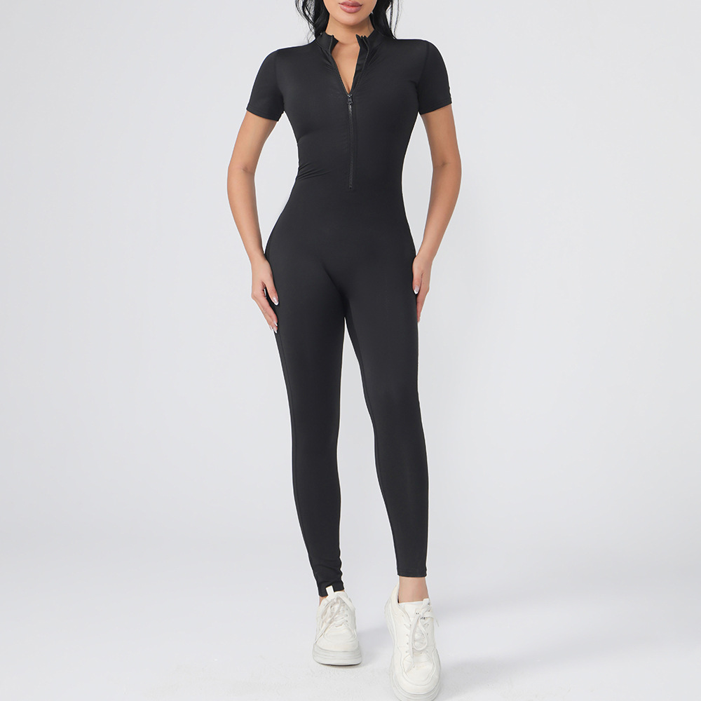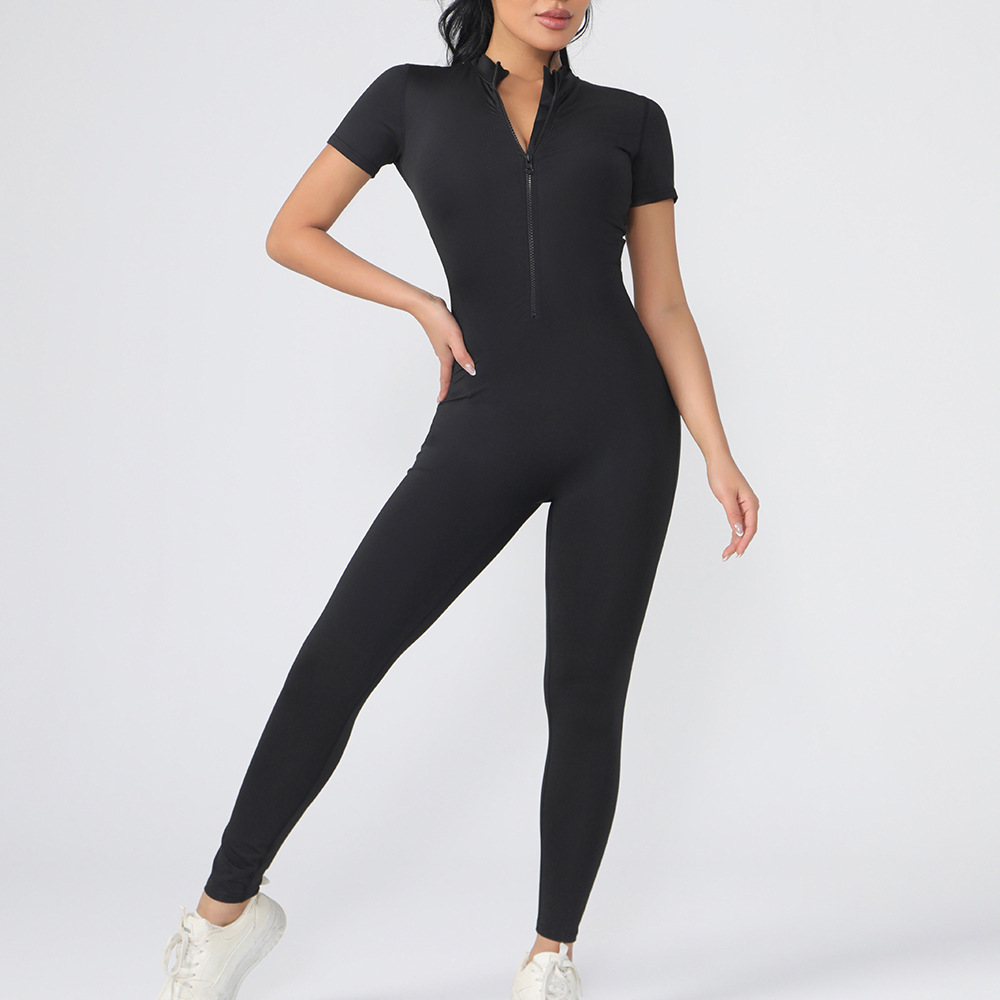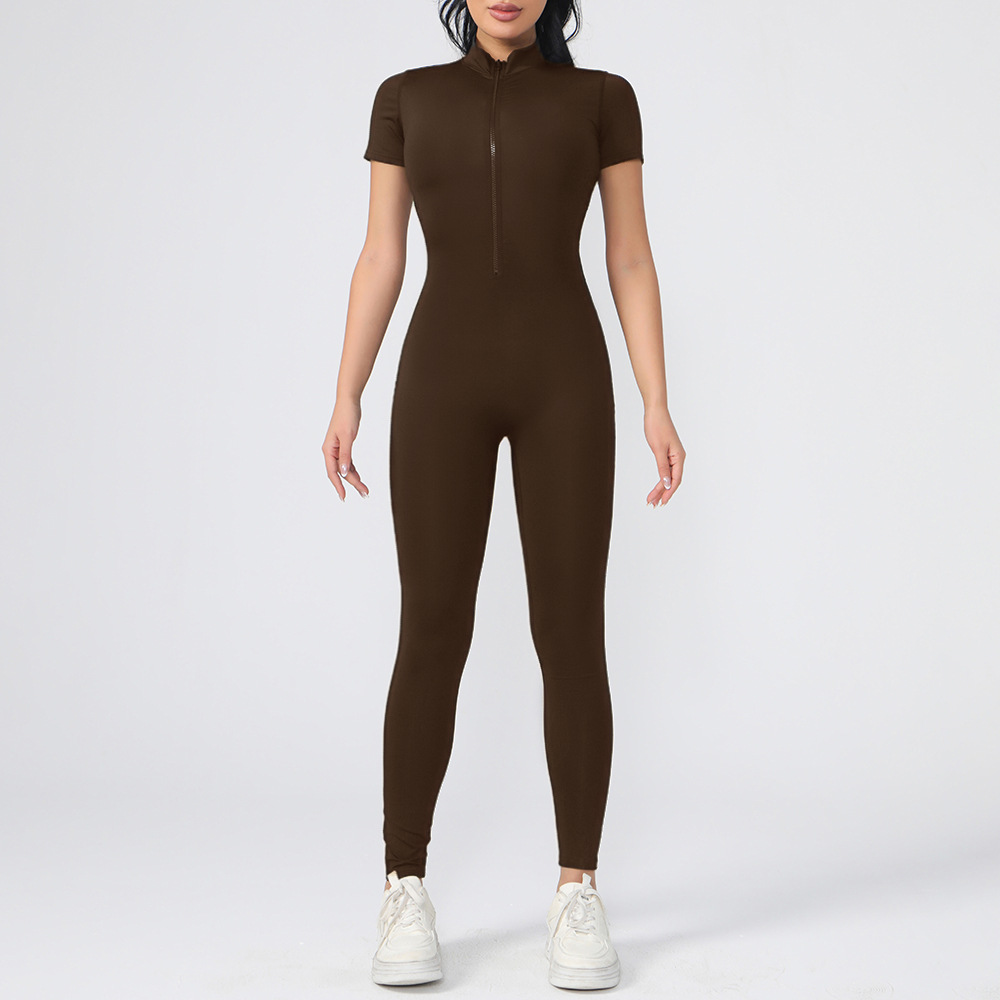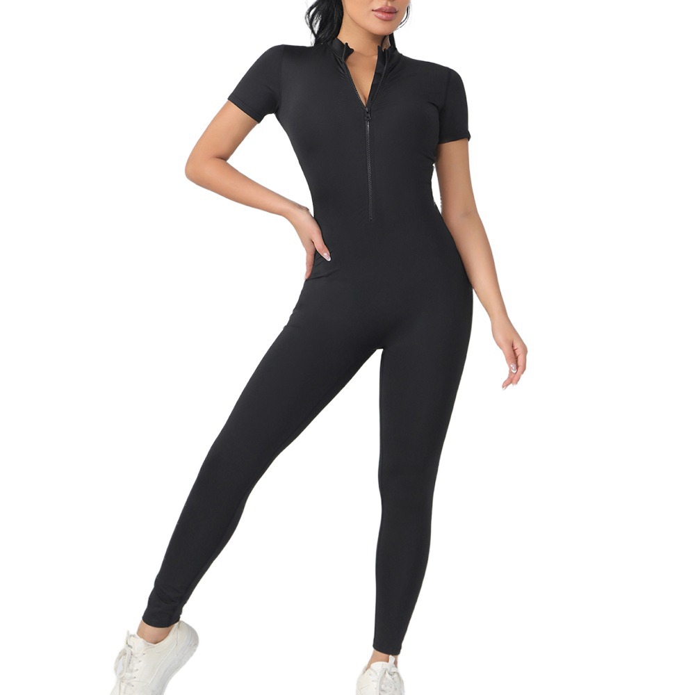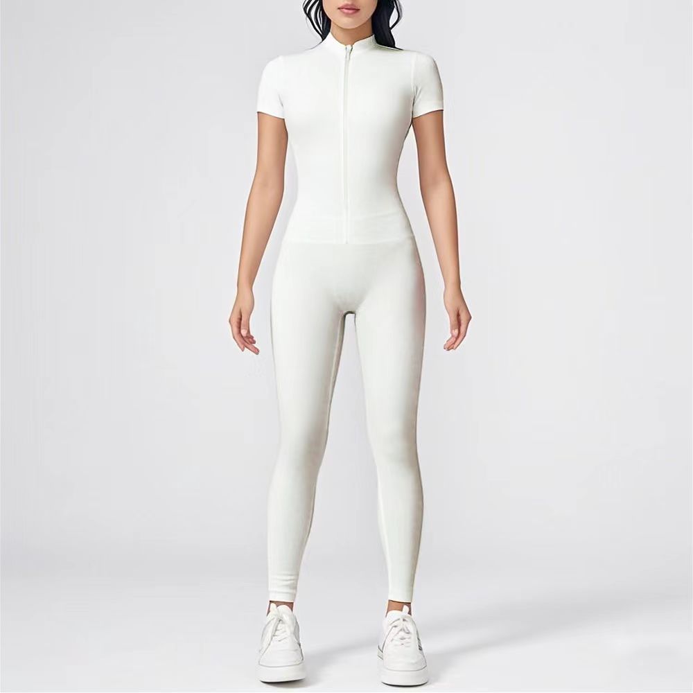Женский спортивный костюм-комбинезон для йоги, танцев и фитнеса, короткий рукав, молния, облегающий, телесного цвета, для путешествий на Amazon