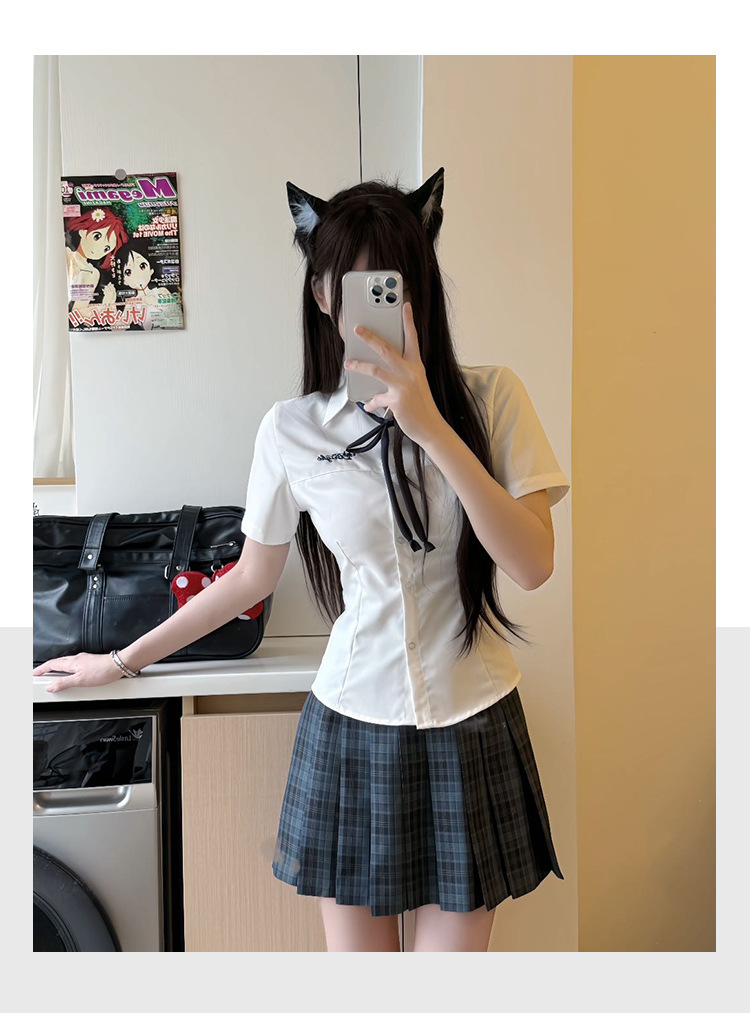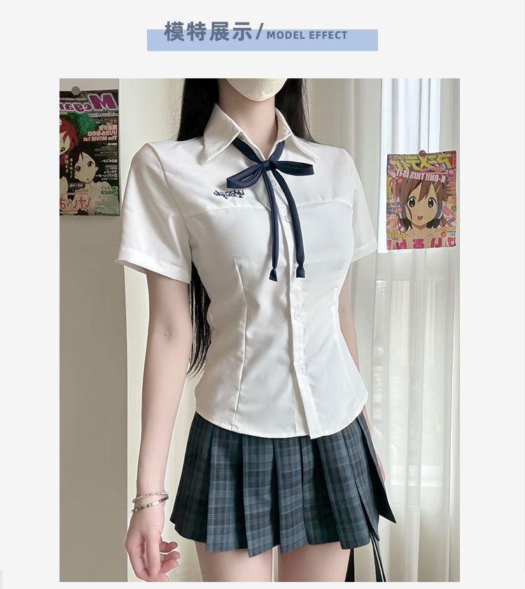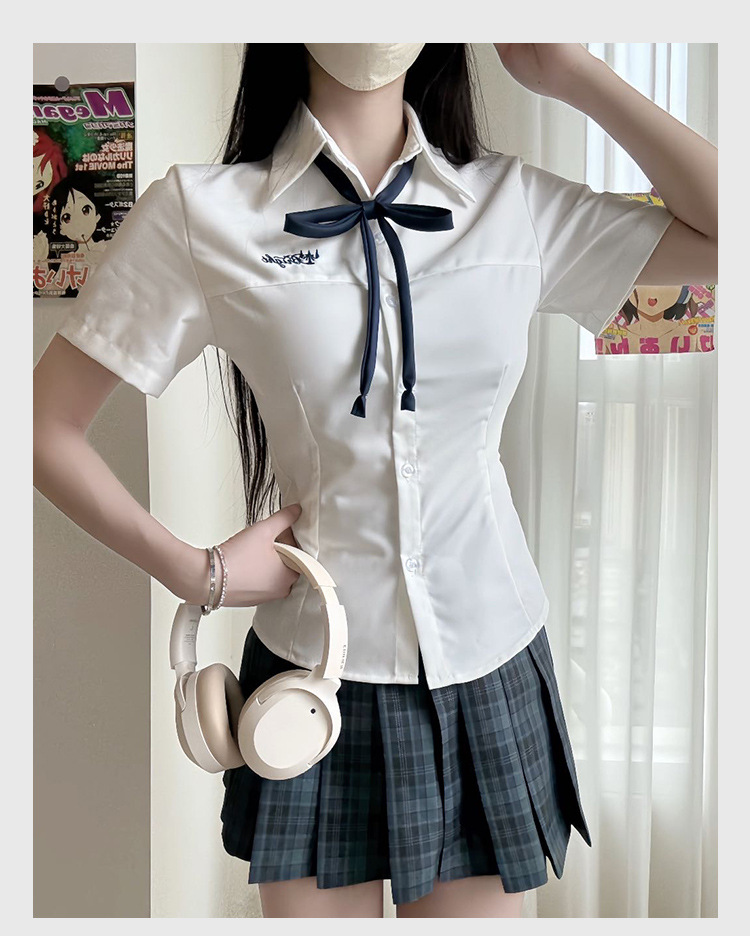 рубашка с коротким рукавом; Рубашка с короткими рукавами + темно-синий колокольчик