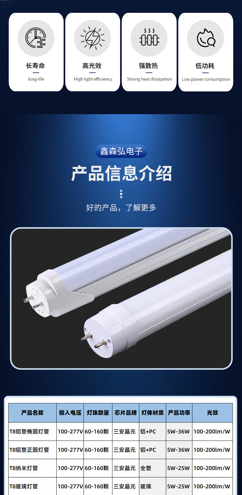 Полная лампа для ПК T8; Нанометровая лампа T8; Алюминиевая пластиковая овальная световая трубка; Алюминиевая пластиковая круглая лампа