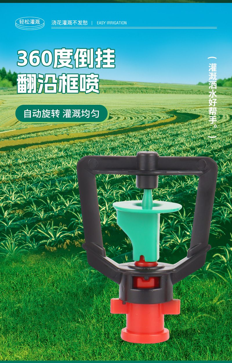 Производитель поставляет 360-градусный садовый разбрызгиватель с переворачивающимся ободом для сельского хозяйства, садоводства, теплиц и микроразбрызгивания.