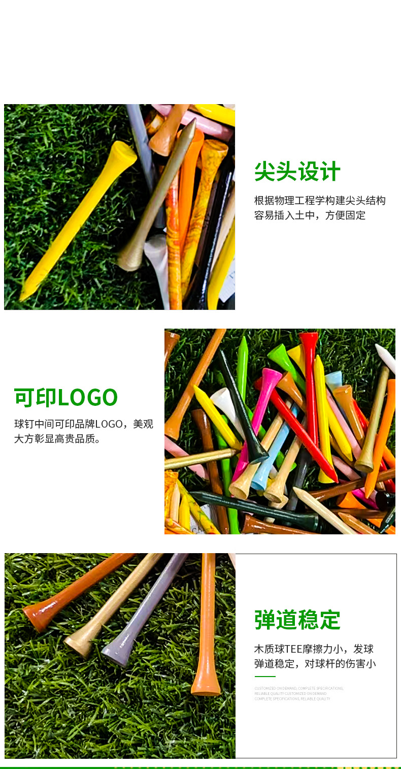 Новые деревянные разноцветные комбинированные гольф-ти 70 мм от производителя с возможностью нанесения логотипа