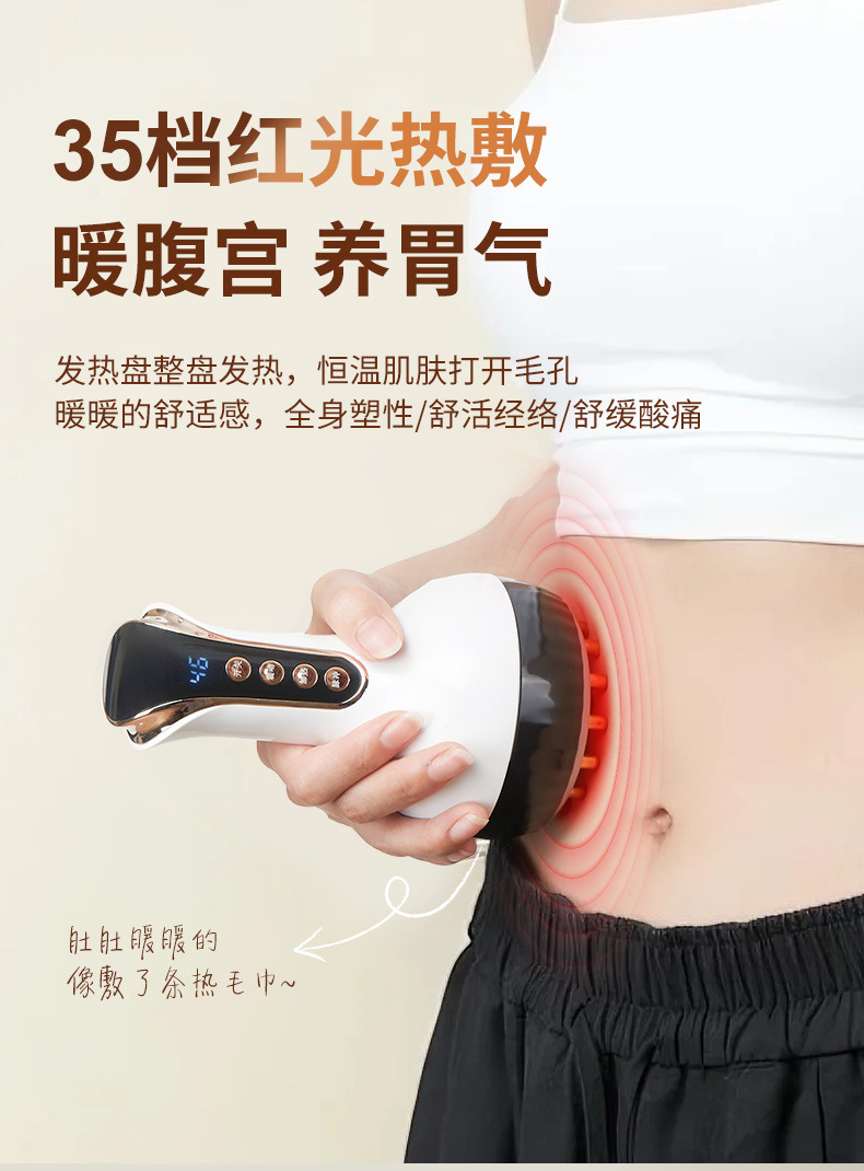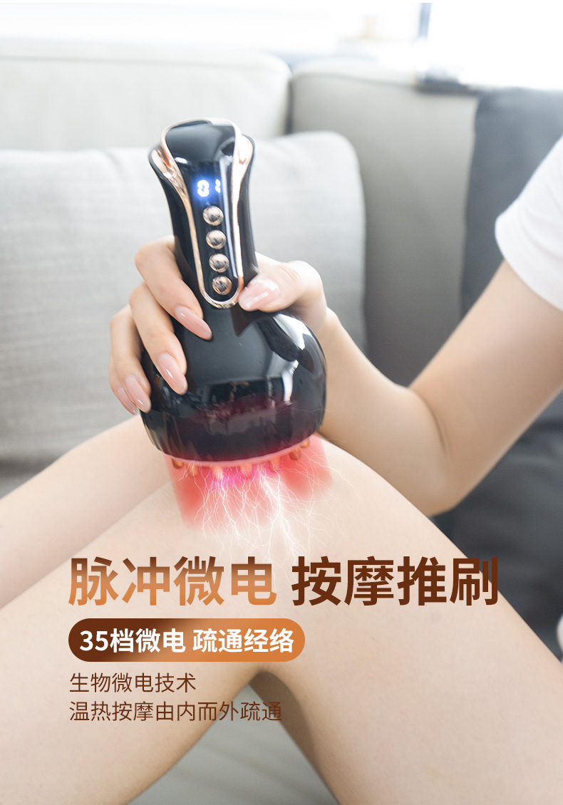 Электрический массажер-щетка для меридианов для массажа живота, ног и всего тела, с функцией гуаша, для международного использования.