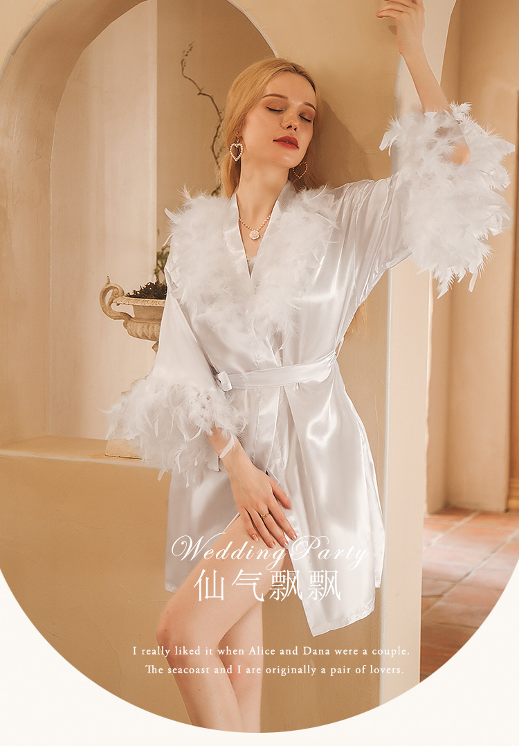Женский халат с перьями для свадебного макияжа, пижама-кимоно для подружек невесты, ночная сорочка для свадебной группы
