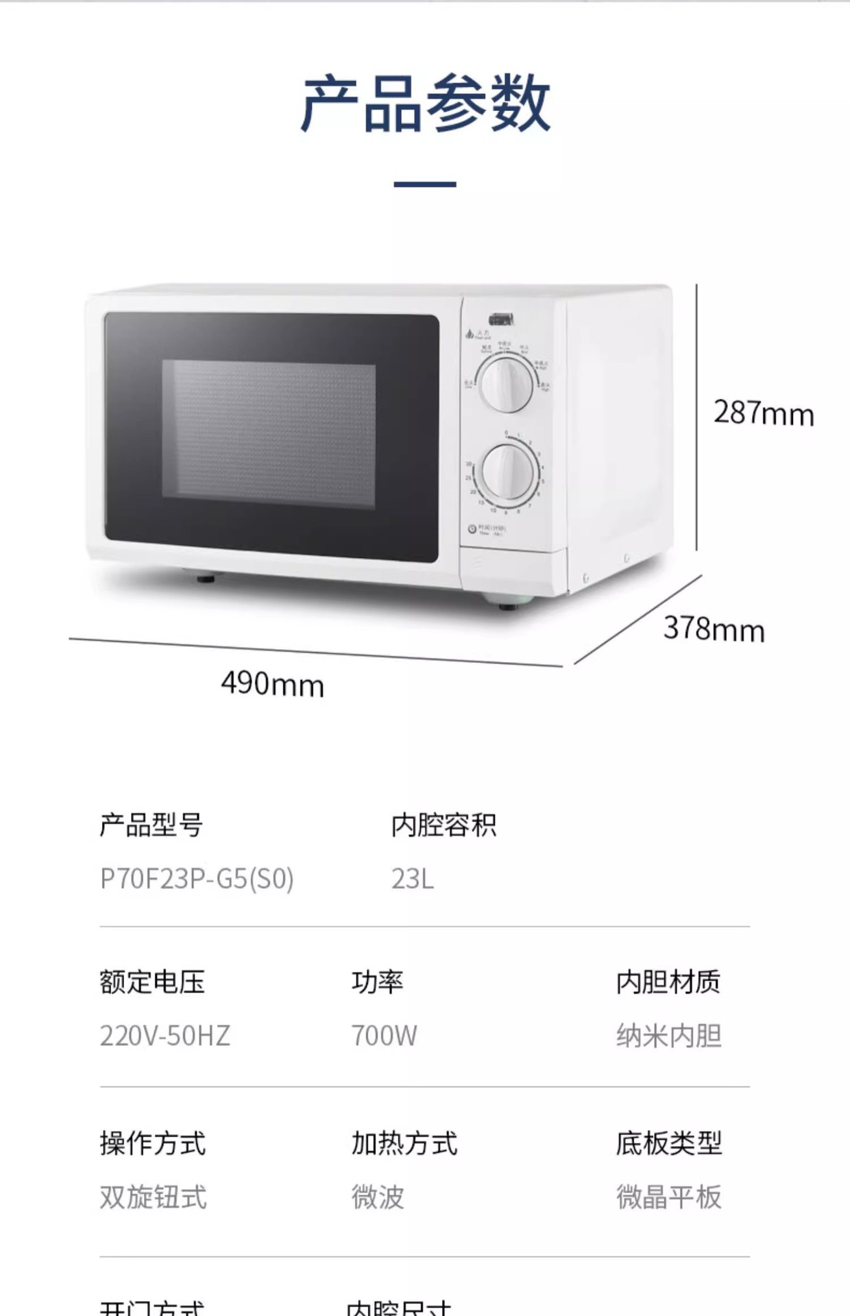 Большая микроволновая печь P70F23P-G5 (S0) для дома, 23 литра, с плоской нагревательной пластиной, специальная модель 2024 года