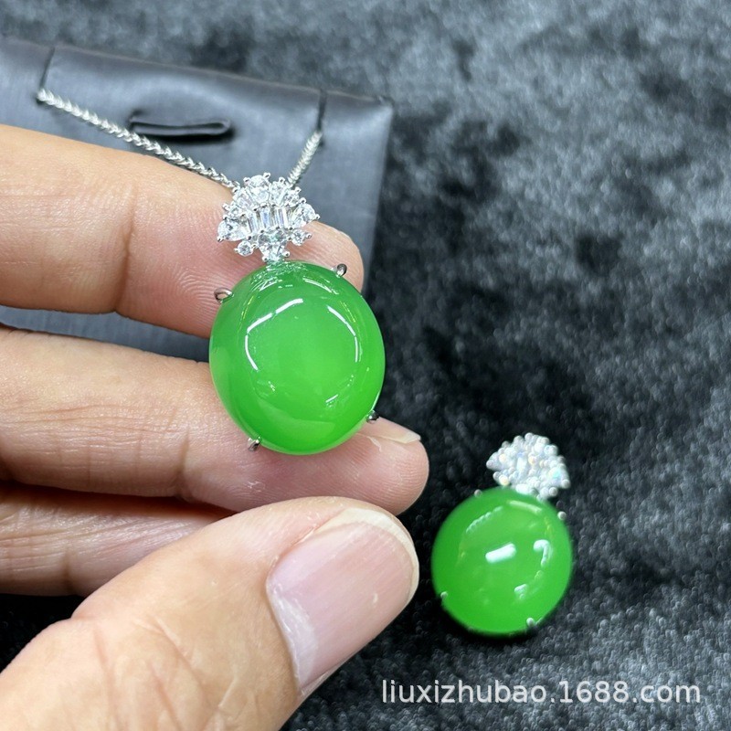 S925 серебряный кулон с инкрустацией солнечного халцедона, круглый кулон с инкрустацией халцедона, овальный кулон High Ice, трансграничный