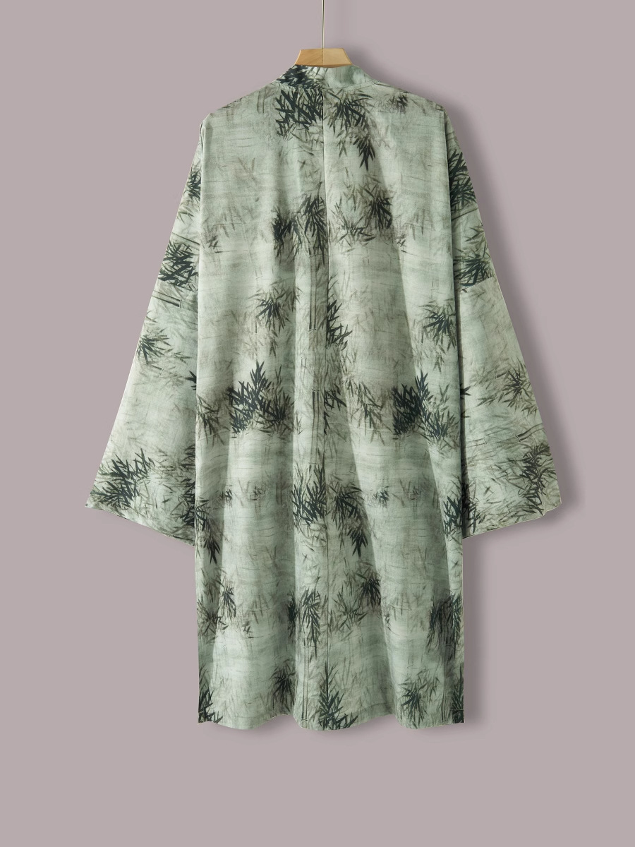 Кимоно-кардиган с принтом в китайском стиле и бамбуковым узором для мужчин и женщин, тонкое пальто, даосский халат, европейская и американская модная модная тонкая шаль
