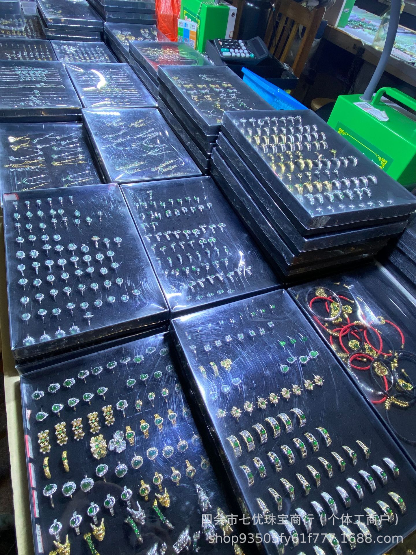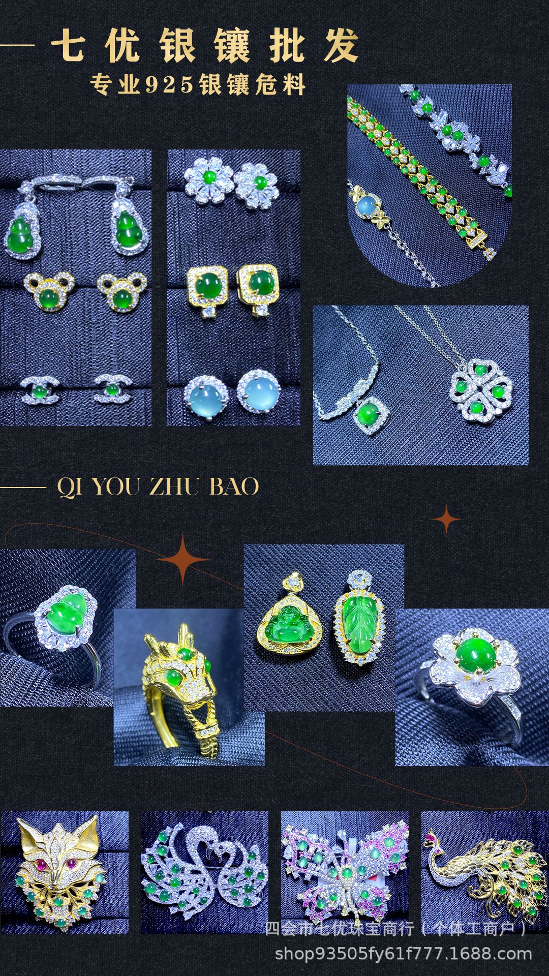 Натуральное кольцо с изображением клевера из нефрита класса А и серебра S925, кубик сахара с водой, ожерелье и серьги оптом от производителя.