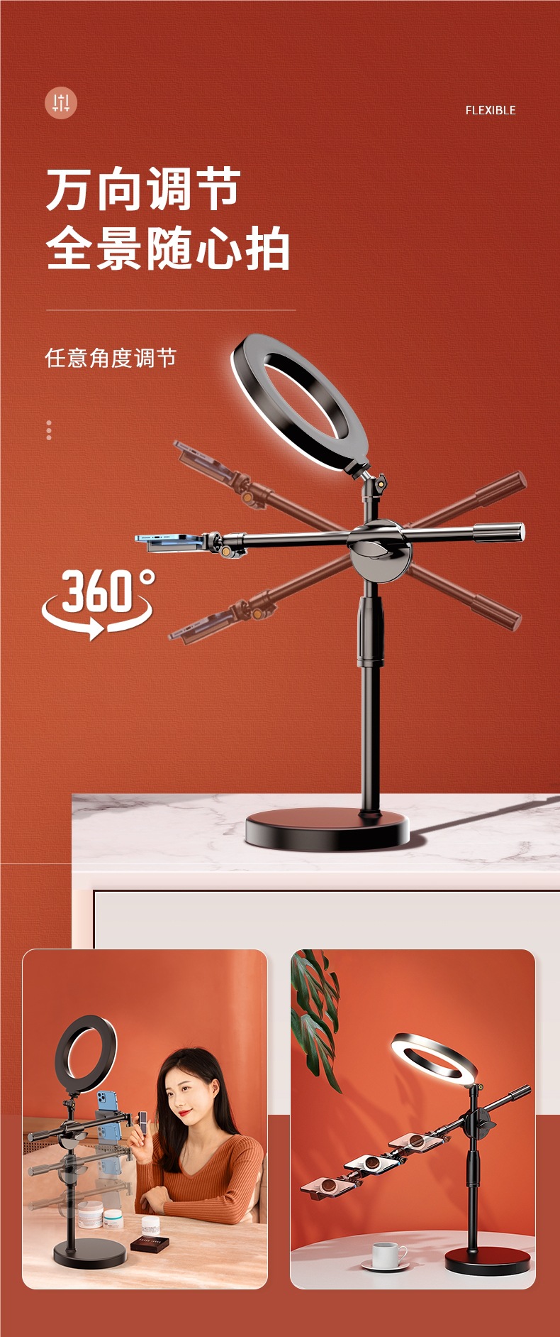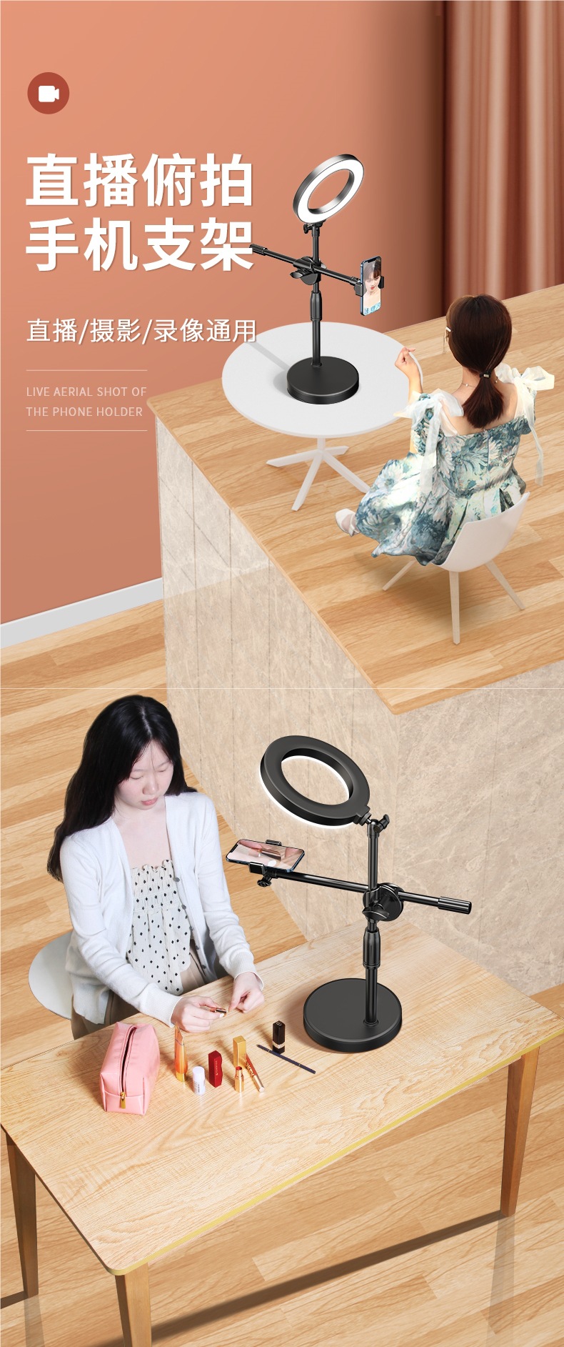 Профессиональная съемка сверху: новый держатель для телефона 2024 года, настольный штатив для прямой трансляции, записи видео, влогов, съемки еды и книг