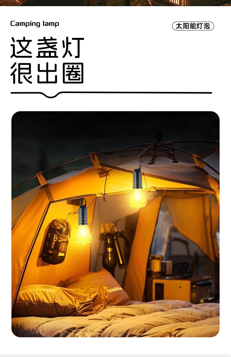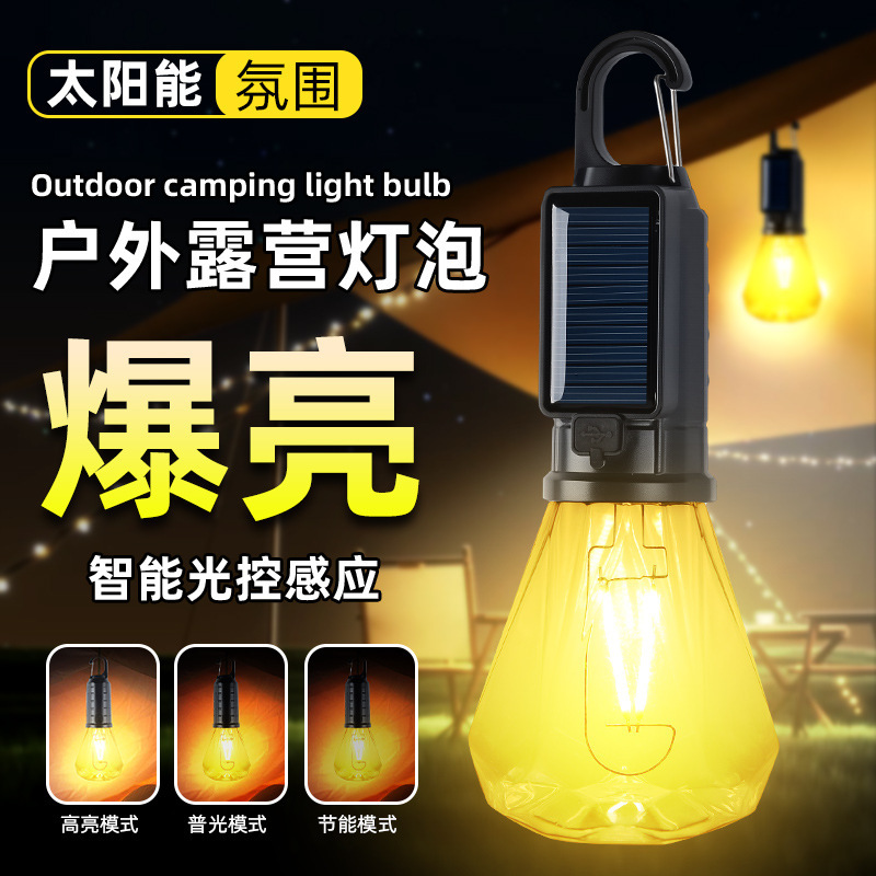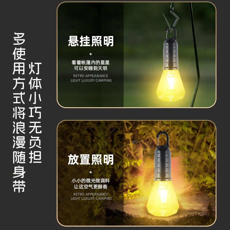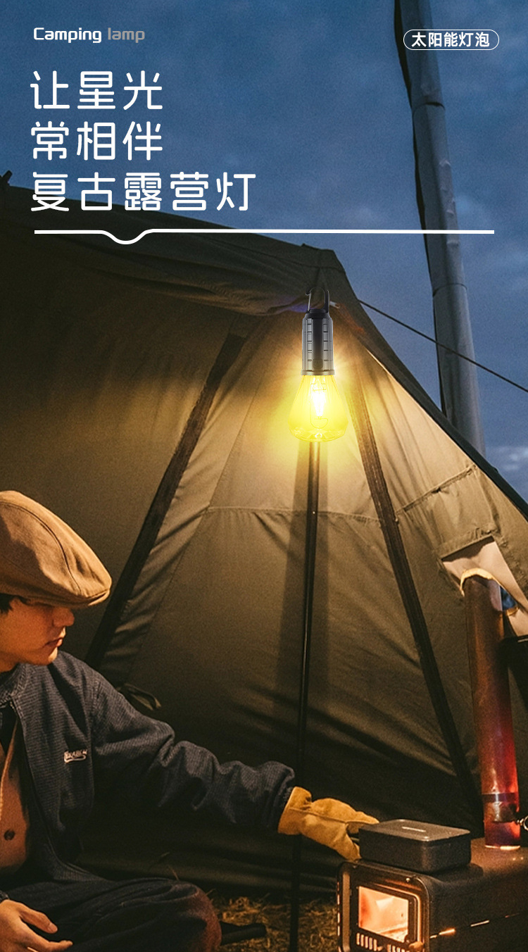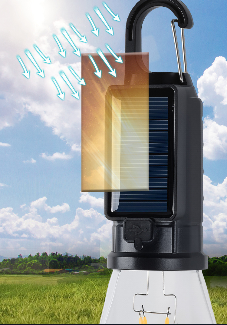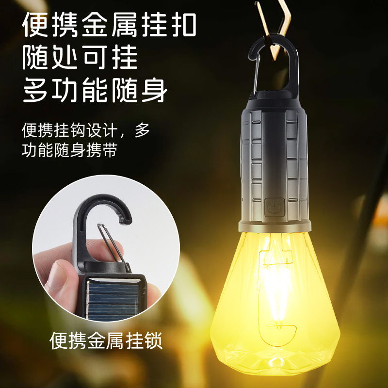 Новый солнечный перезаряжаемый светильник для кемпинга, ретро-светильник для кемпинга, атмосферный светильник, уличный светильник для палатки, аварийная вольфрамовая лампа