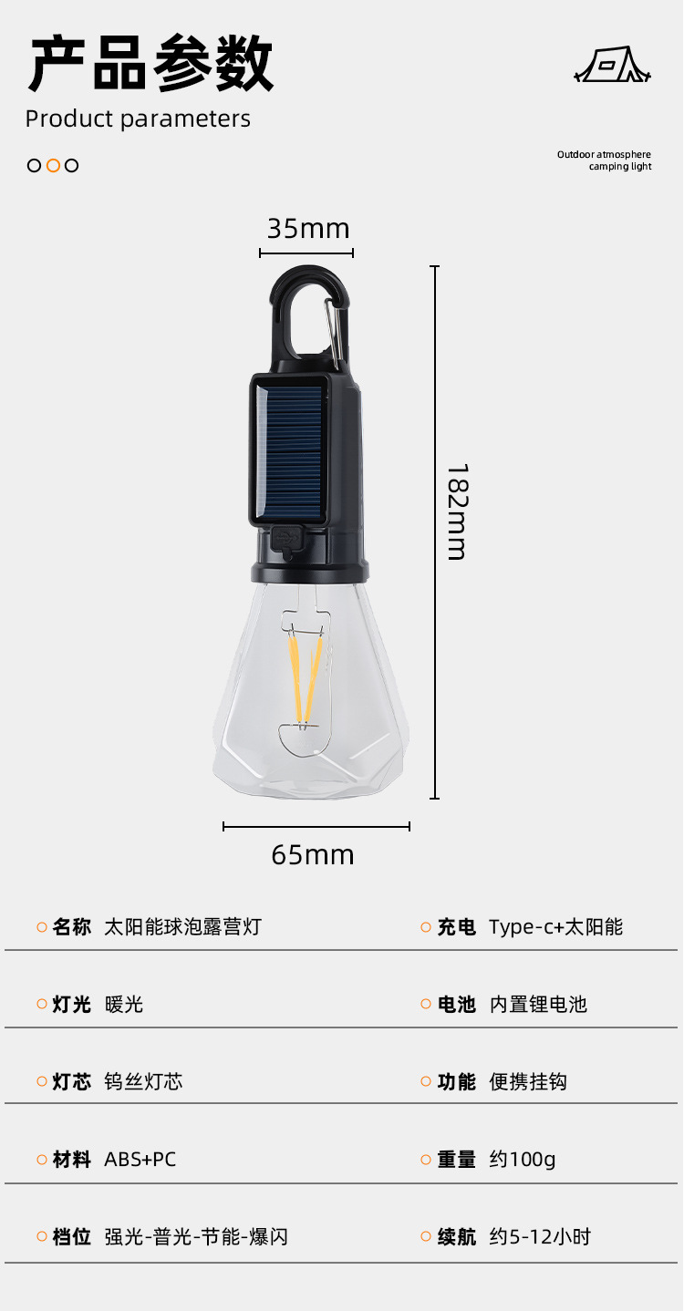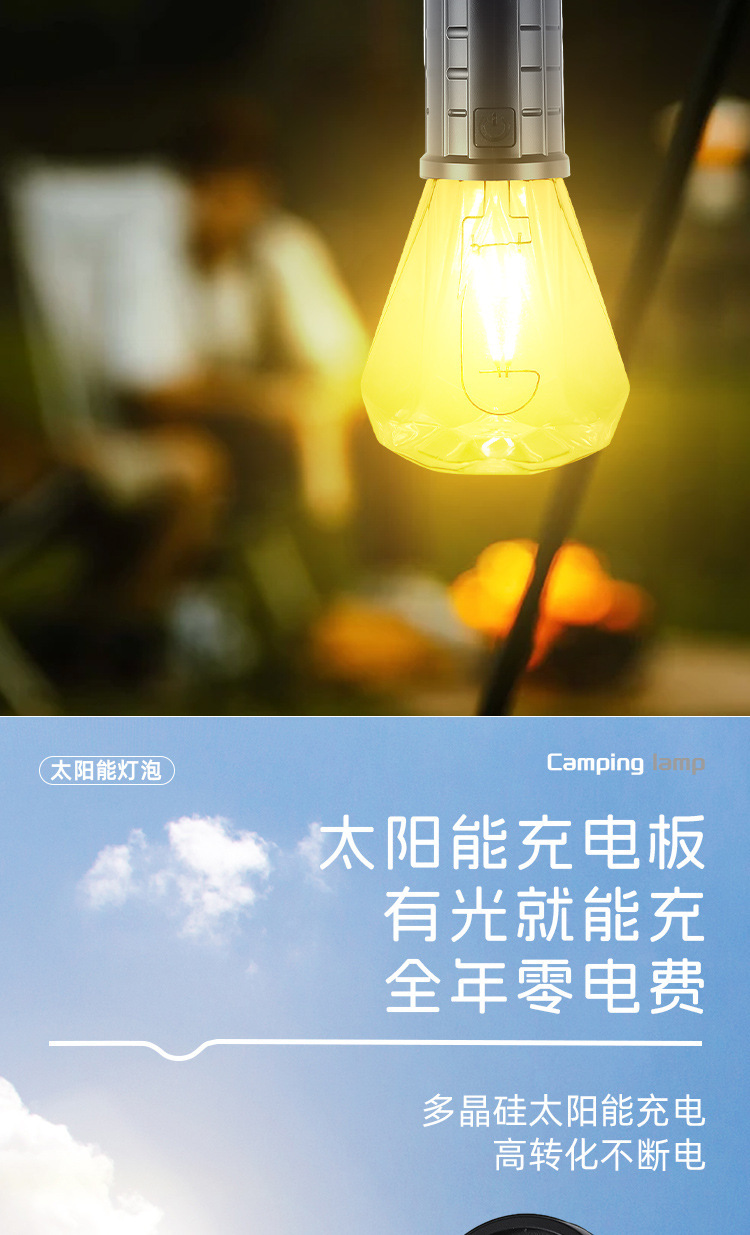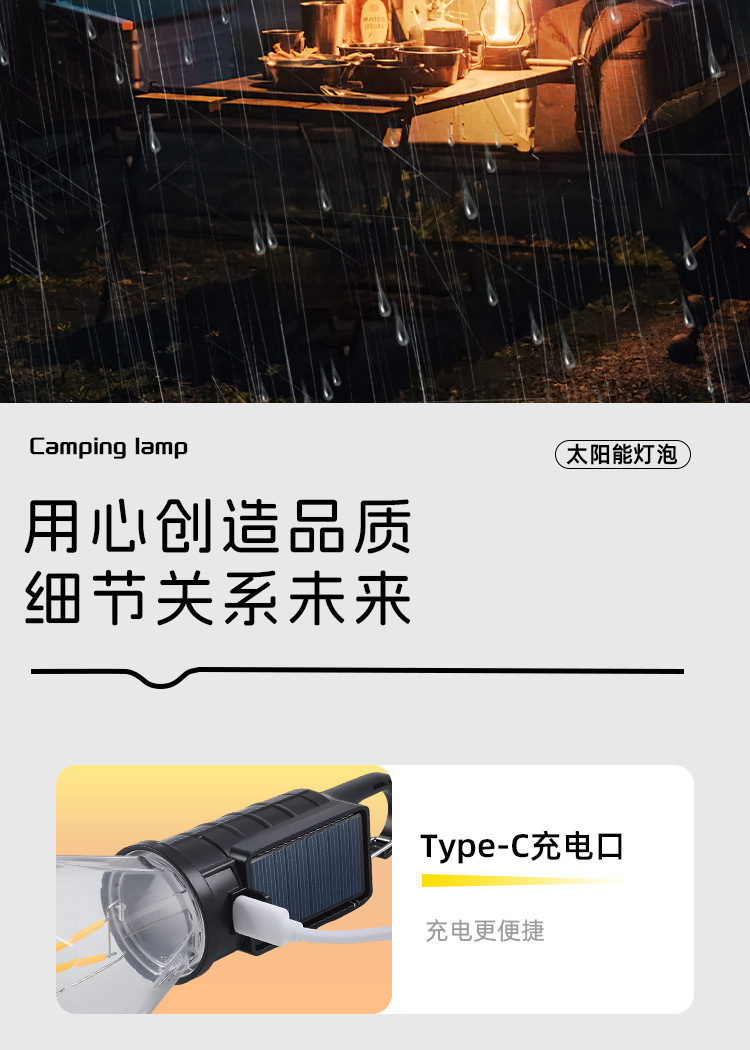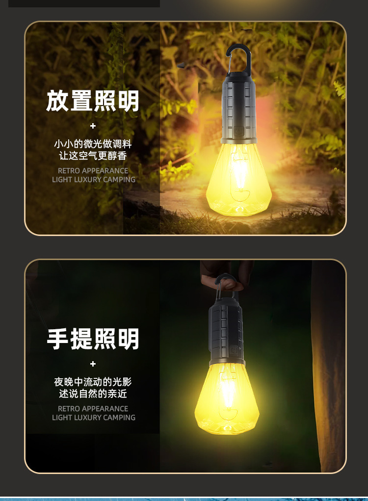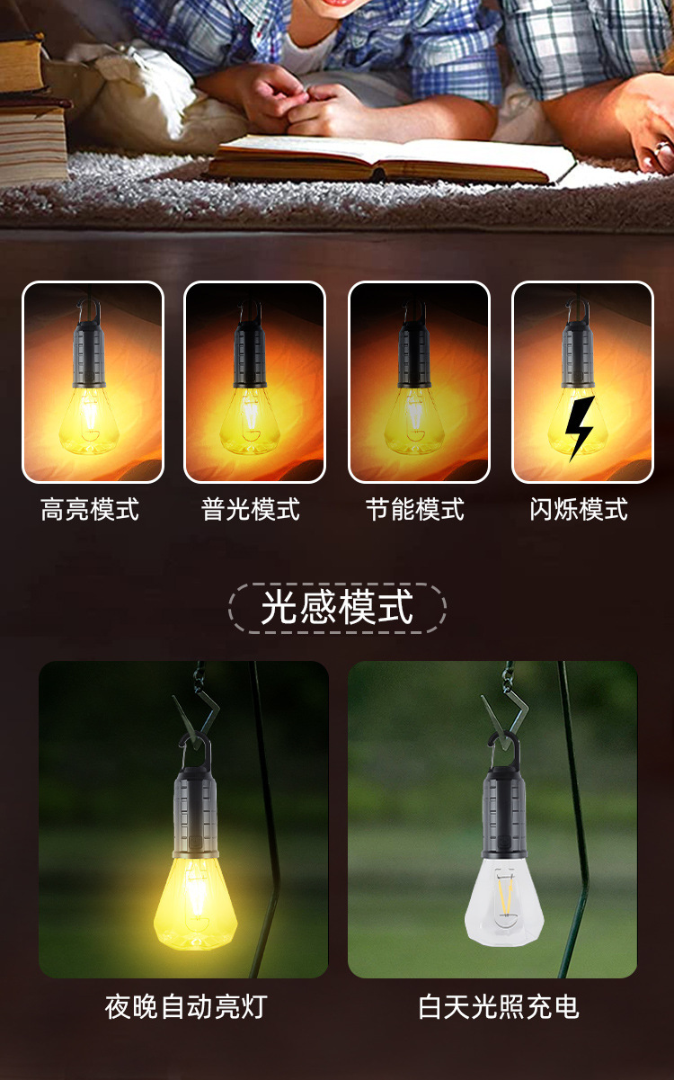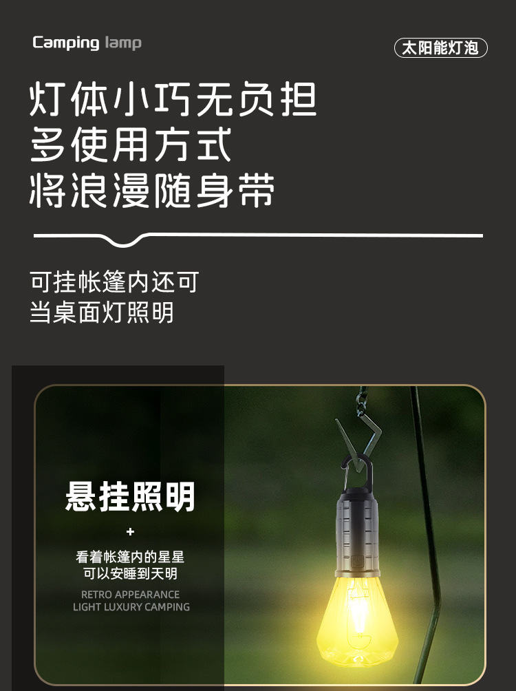 Новый солнечный перезаряжаемый светильник для кемпинга, ретро-светильник для кемпинга, атмосферный светильник, уличный светильник для палатки, аварийная вольфрамовая лампа