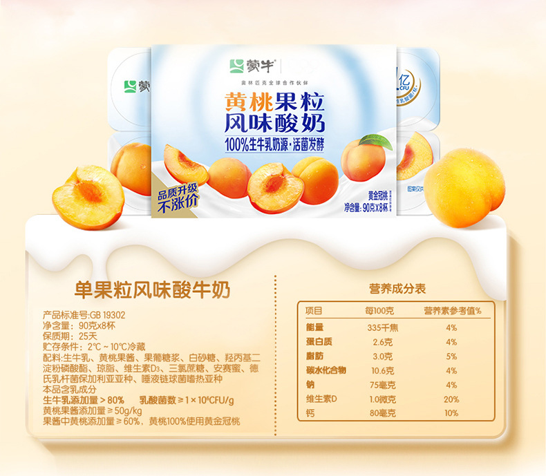 Бесплатная доставка: оригинальный пробиотический ферментированный йогурт с кусочками желтого персика и клубники, заменитель завтрака для студентов, 90 г, дропшиппинг.