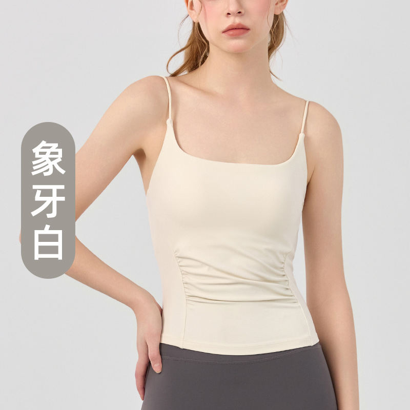 Женский жилет для йоги с нагрудными подушечками, топы-бретельки, дизайн спортивного бюстгальтера, плиссированная спинка, женский фитнес-бюстгальтер
