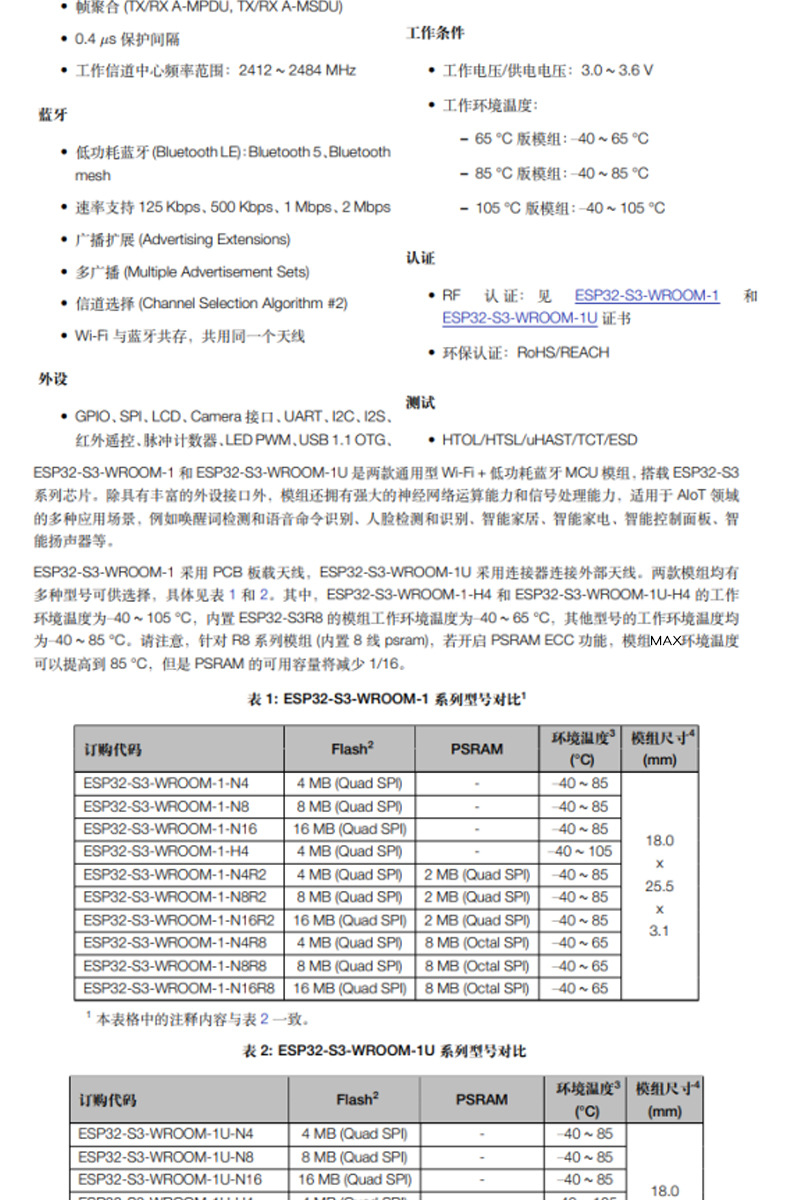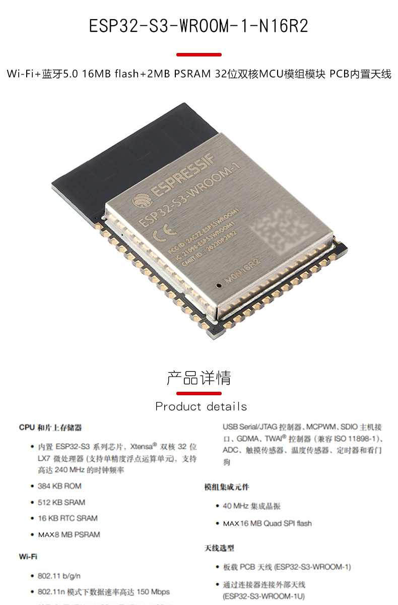 ESP32-S3-WROOM-1-N16R2 Wi-Fi+Bluetooth 16 МБ 32-битный двухъядерный модуль MCU