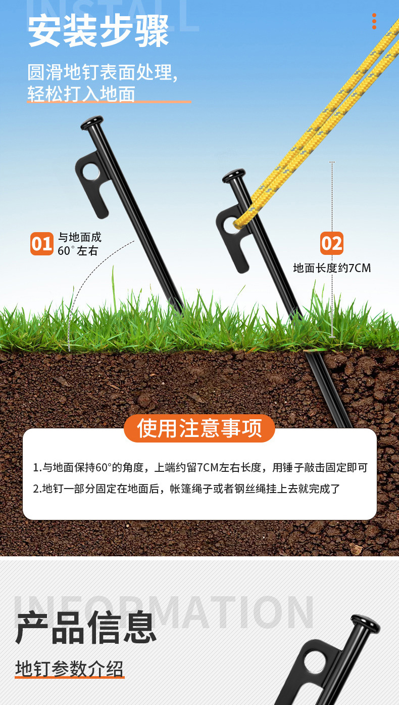 Утолщенные и удлиненные кемпинговые колышки для улицы, веревки для тентовых палаток, стальные кемпинговые колышки для земли, держатели для колышков для пляжного лагеря.
