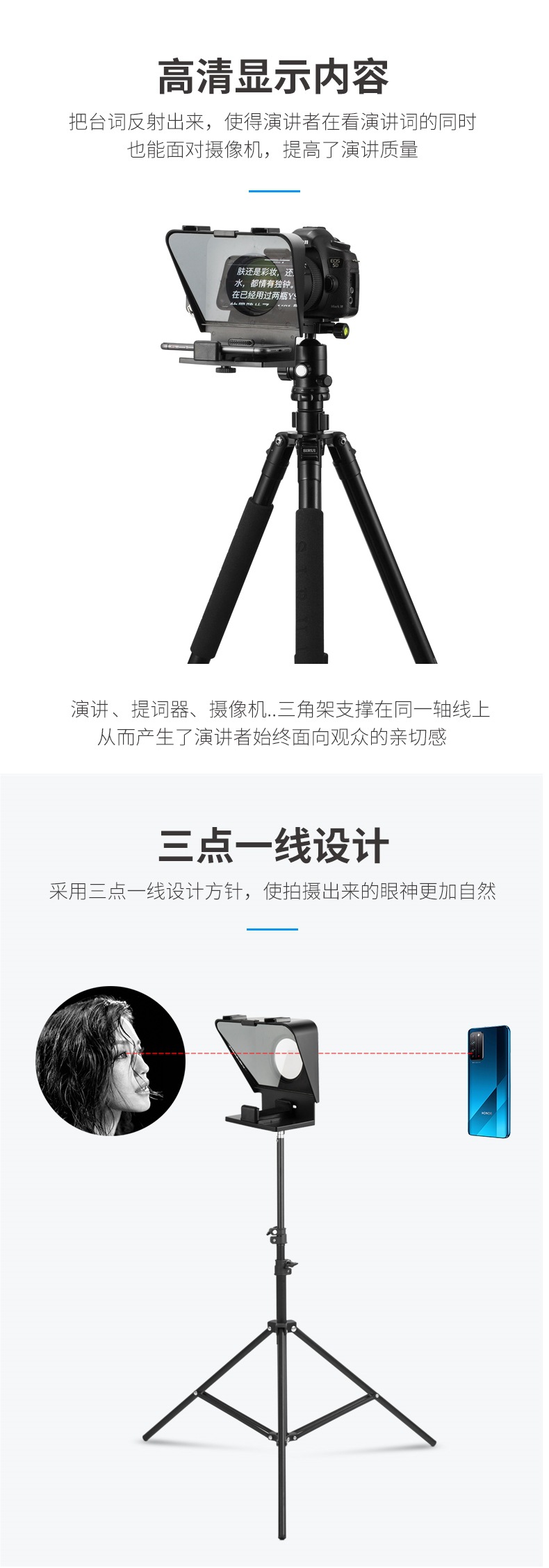 Телесуфлер с быстрым таймером для мобильных телефонов и зеркальных камер, портативная запись небольших речевых видео, запись курсов, прямая трансляция якоря.