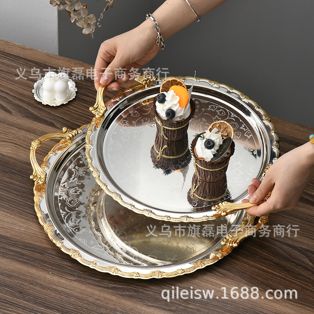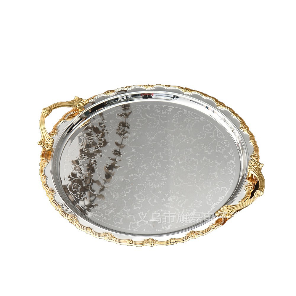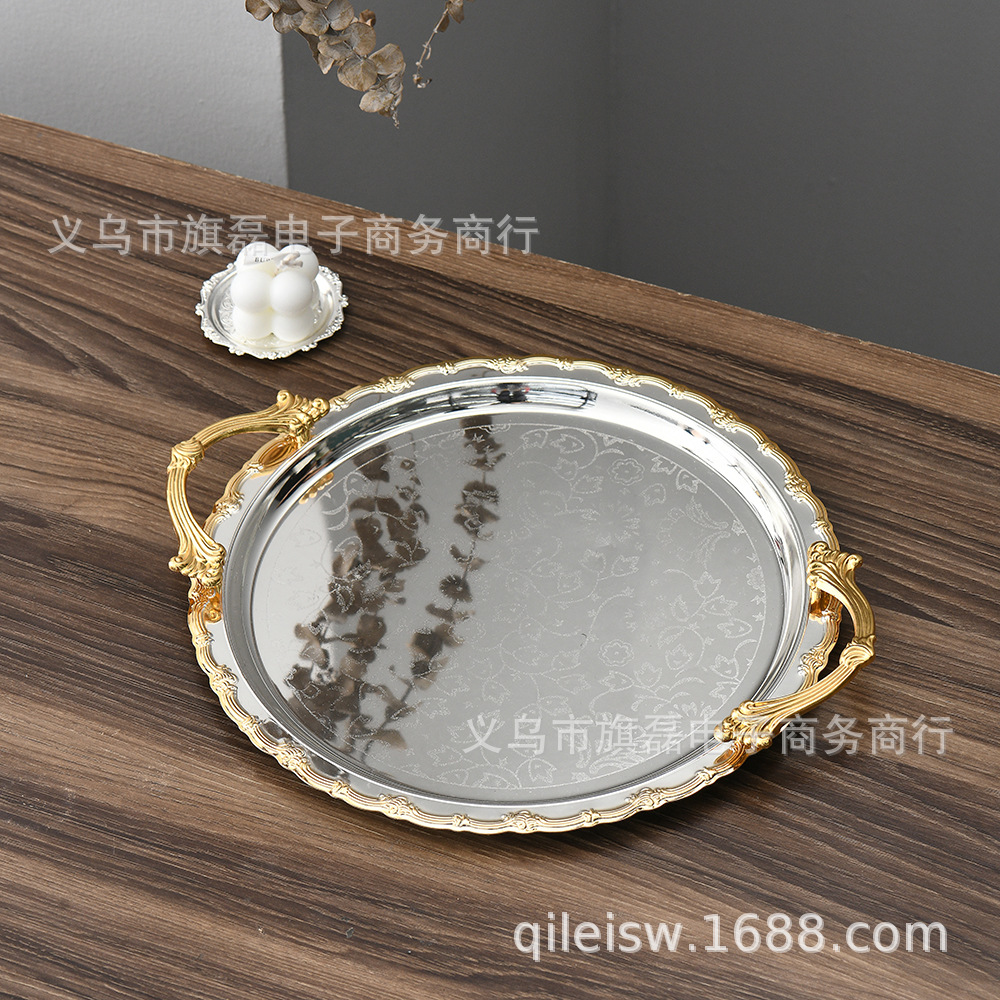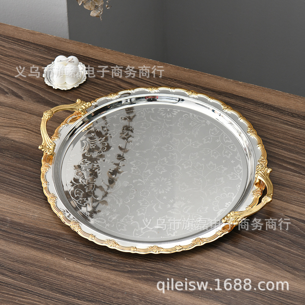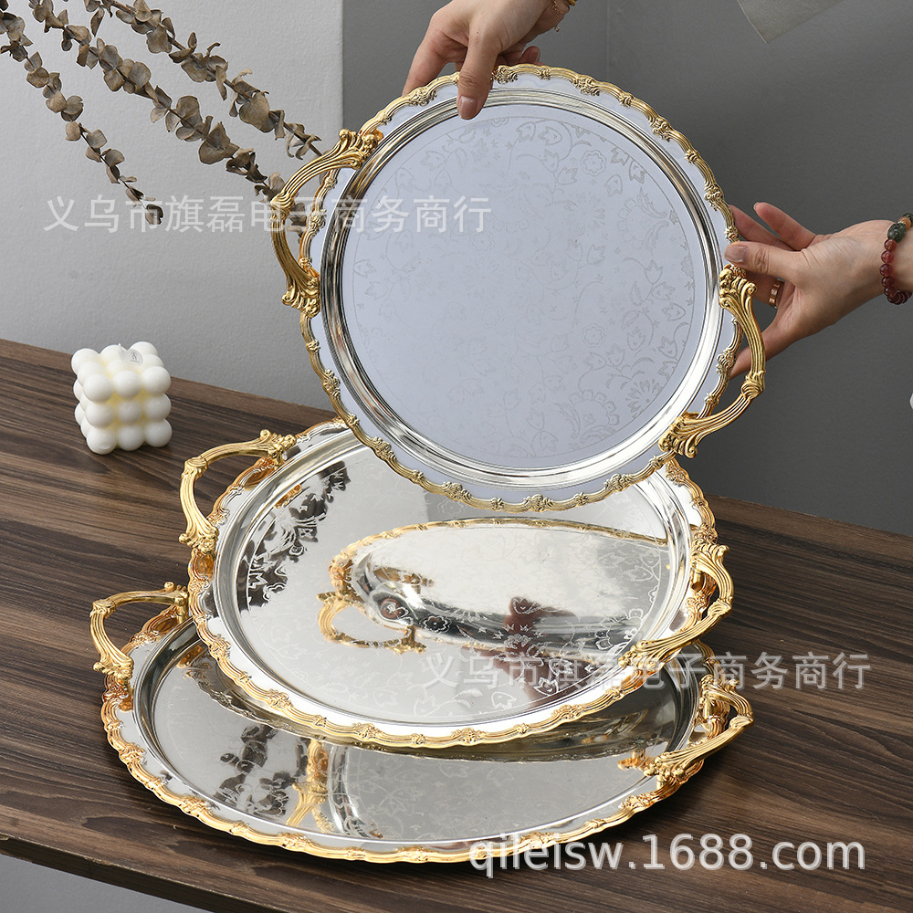 Поднос для свадебного десертного стола в европейском стиле, трансграничный, в стиле лёгкой роскоши, для отеля, поднос для послеобеденного чая, серебряное основание, золотая кромка, поднос для хранения и демонстрации