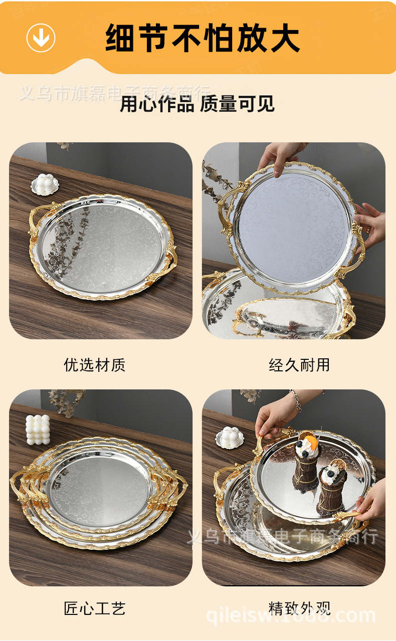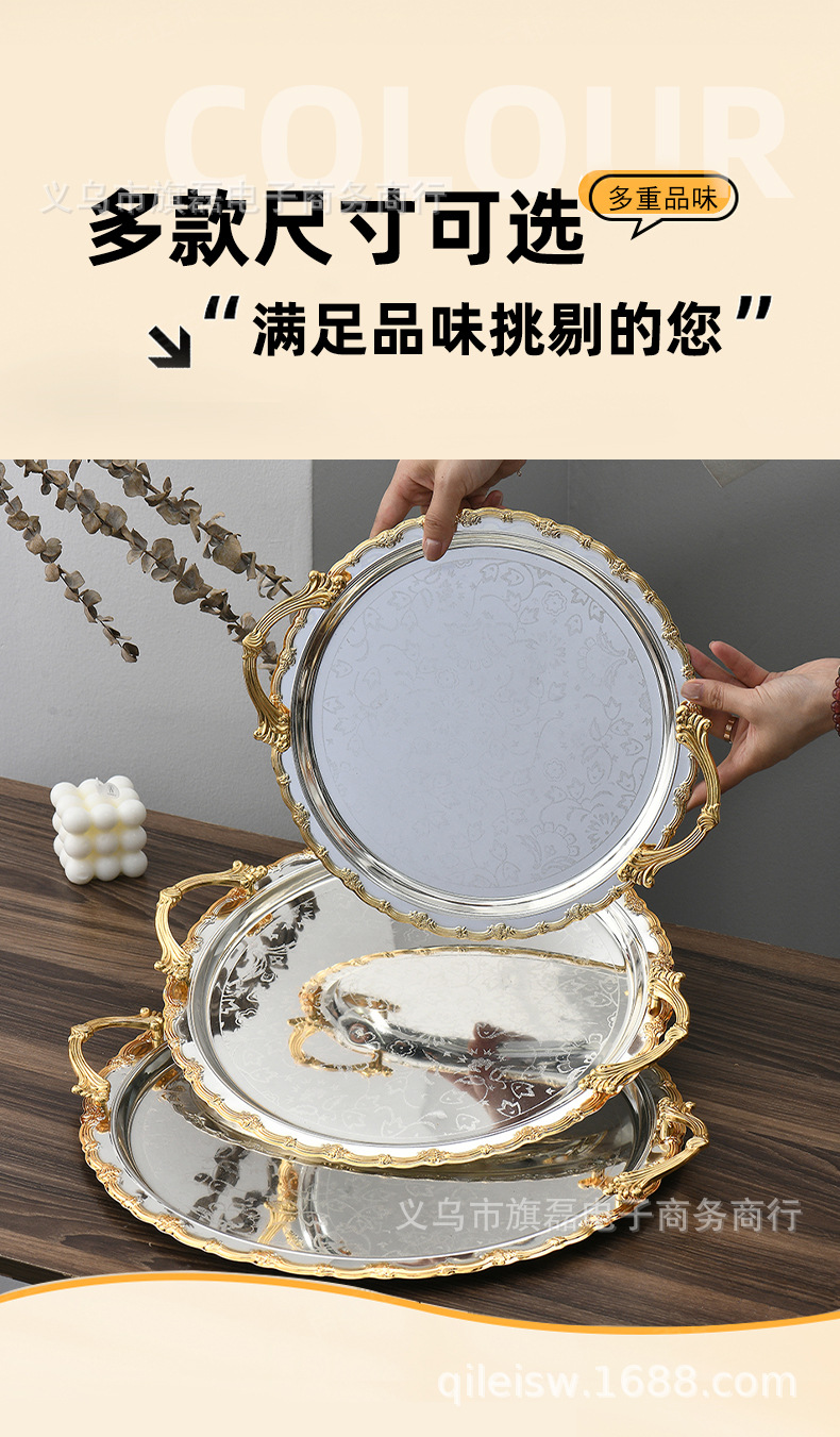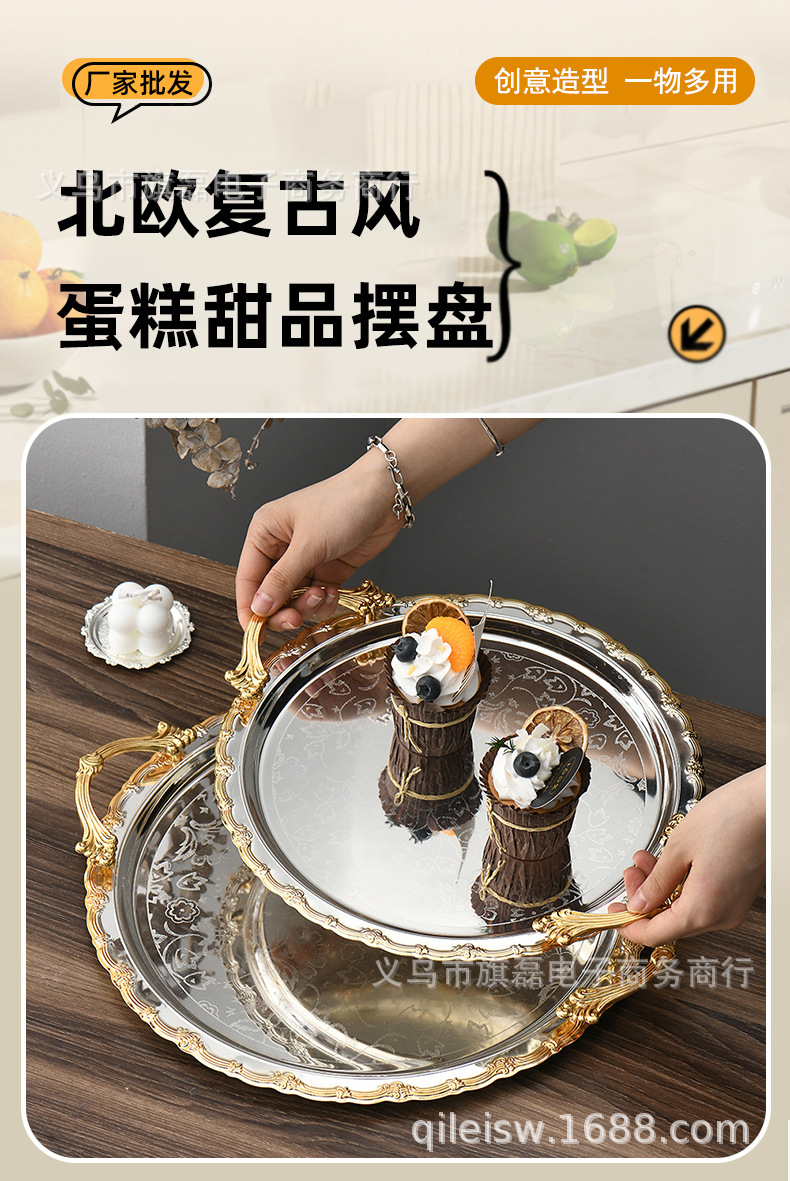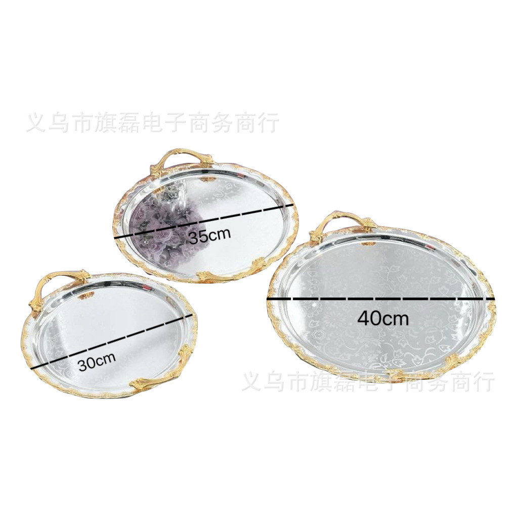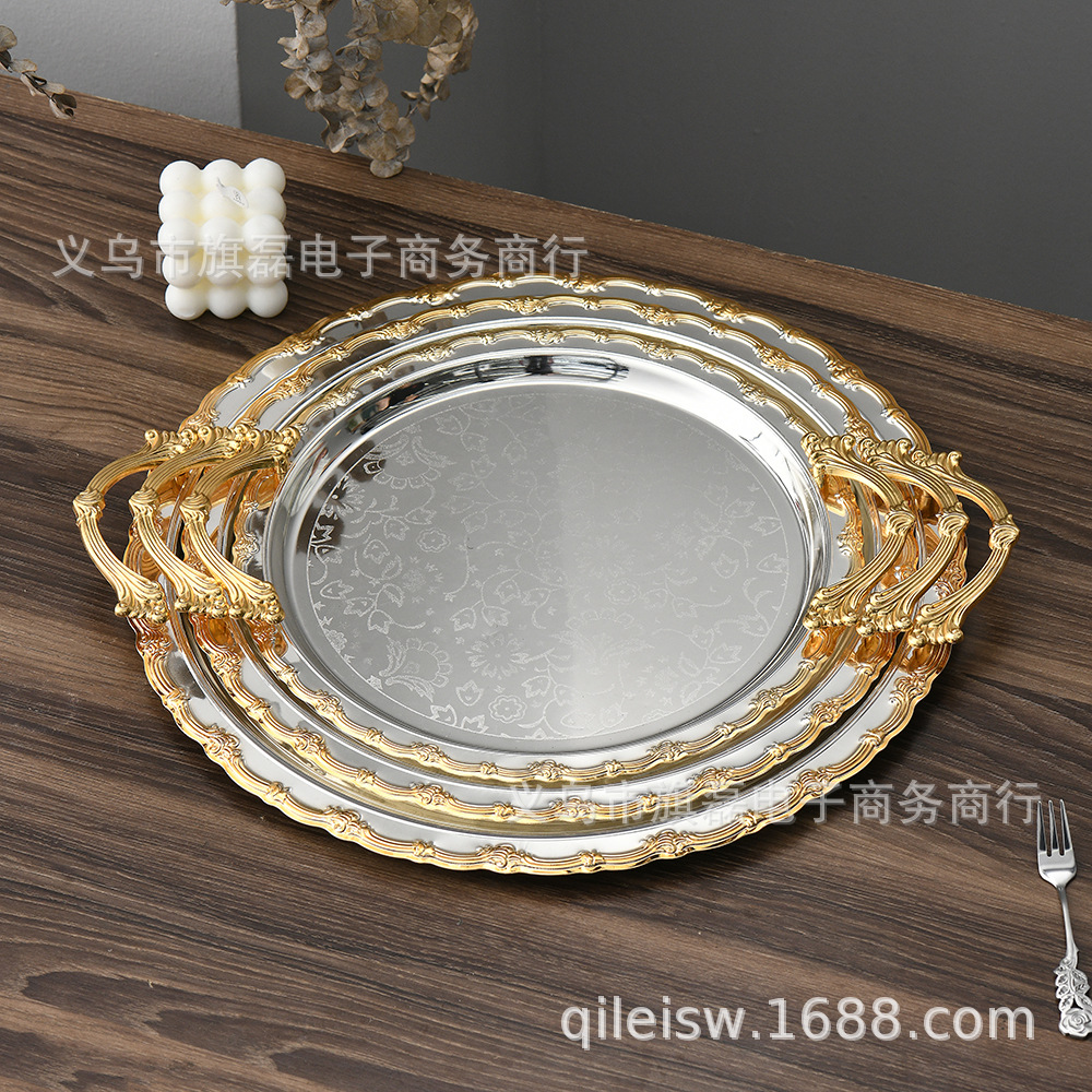 Поднос для свадебного десертного стола в европейском стиле, трансграничный, в стиле лёгкой роскоши, для отеля, поднос для послеобеденного чая, серебряное основание, золотая кромка, поднос для хранения и демонстрации