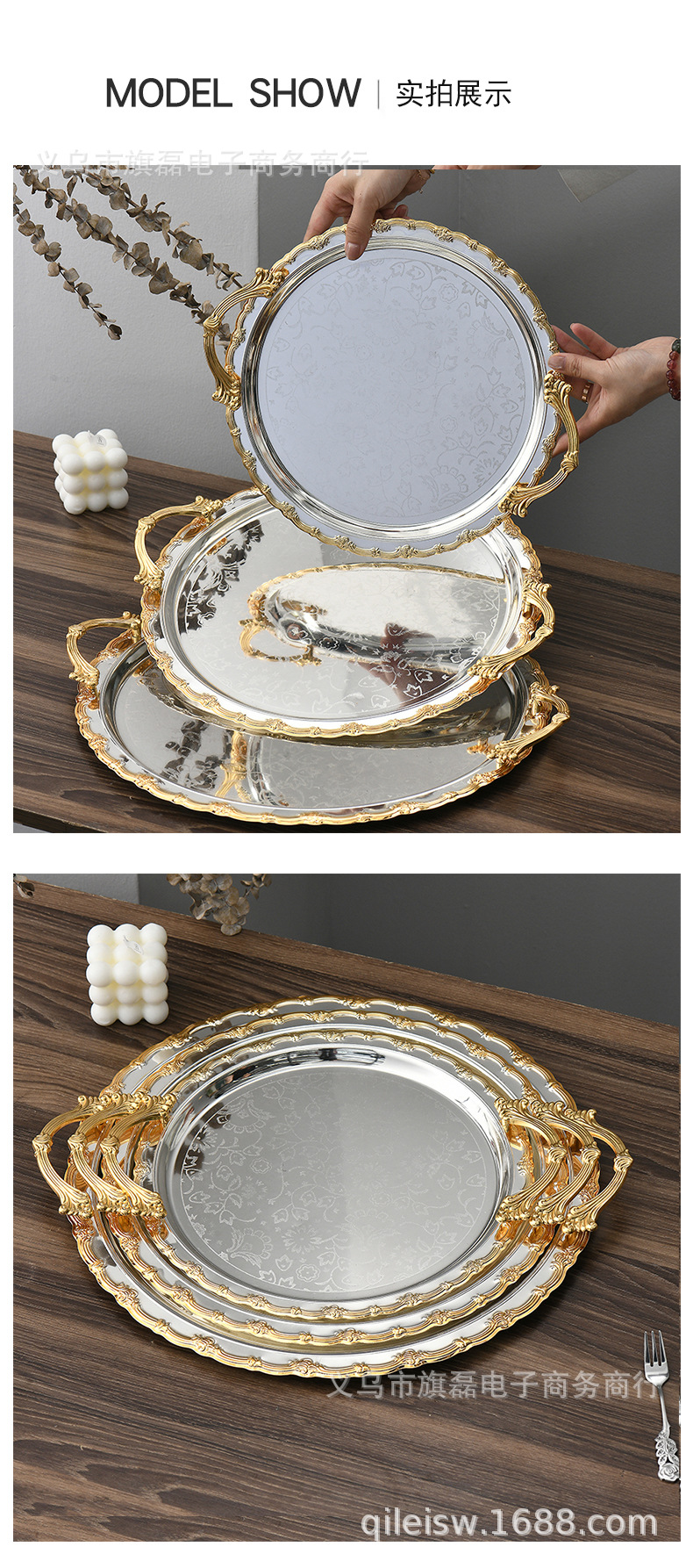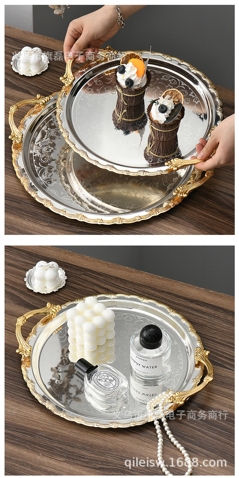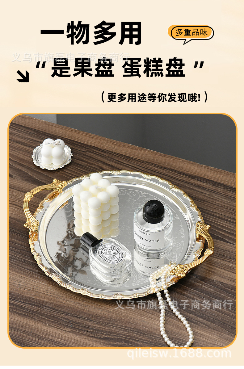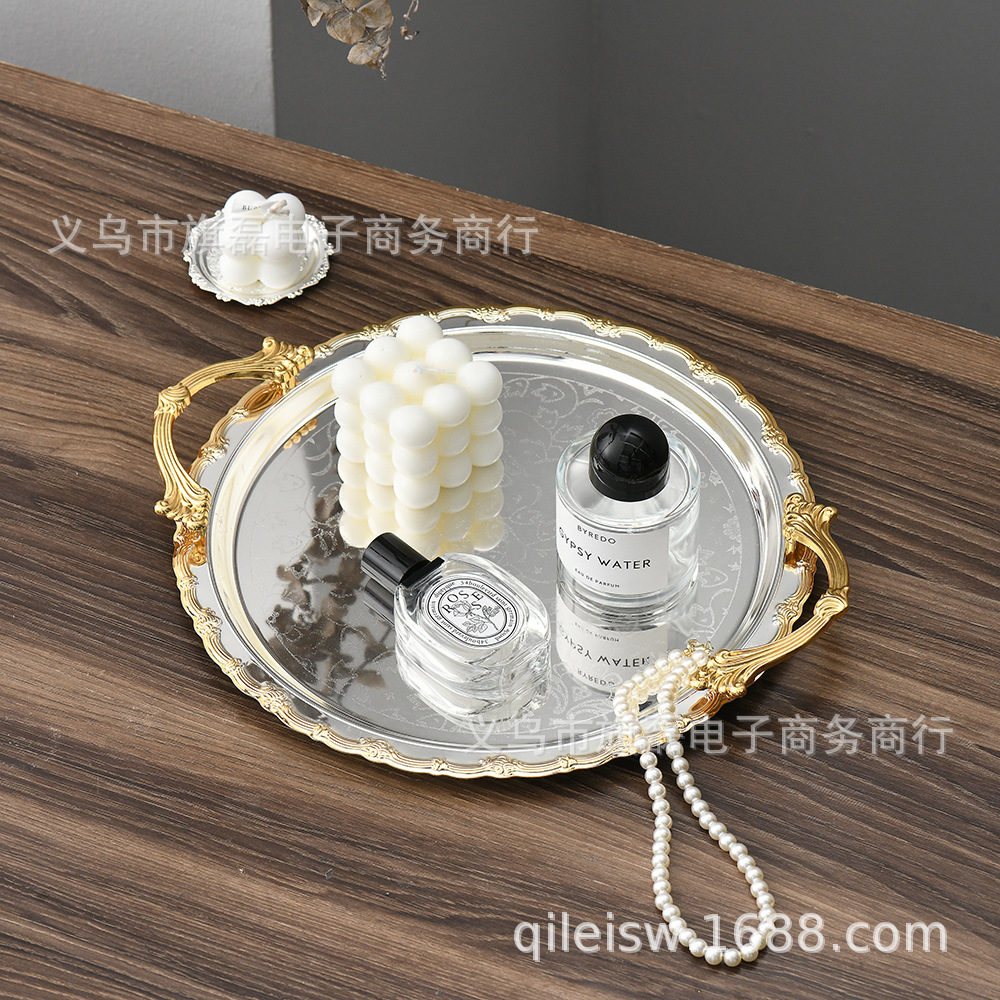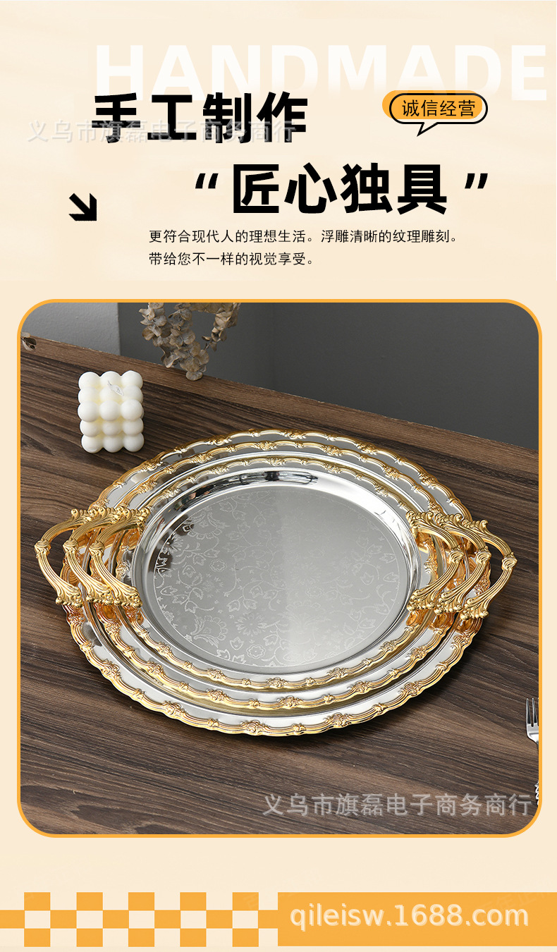 Поднос для свадебного десертного стола в европейском стиле, трансграничный, в стиле лёгкой роскоши, для отеля, поднос для послеобеденного чая, серебряное основание, золотая кромка, поднос для хранения и демонстрации