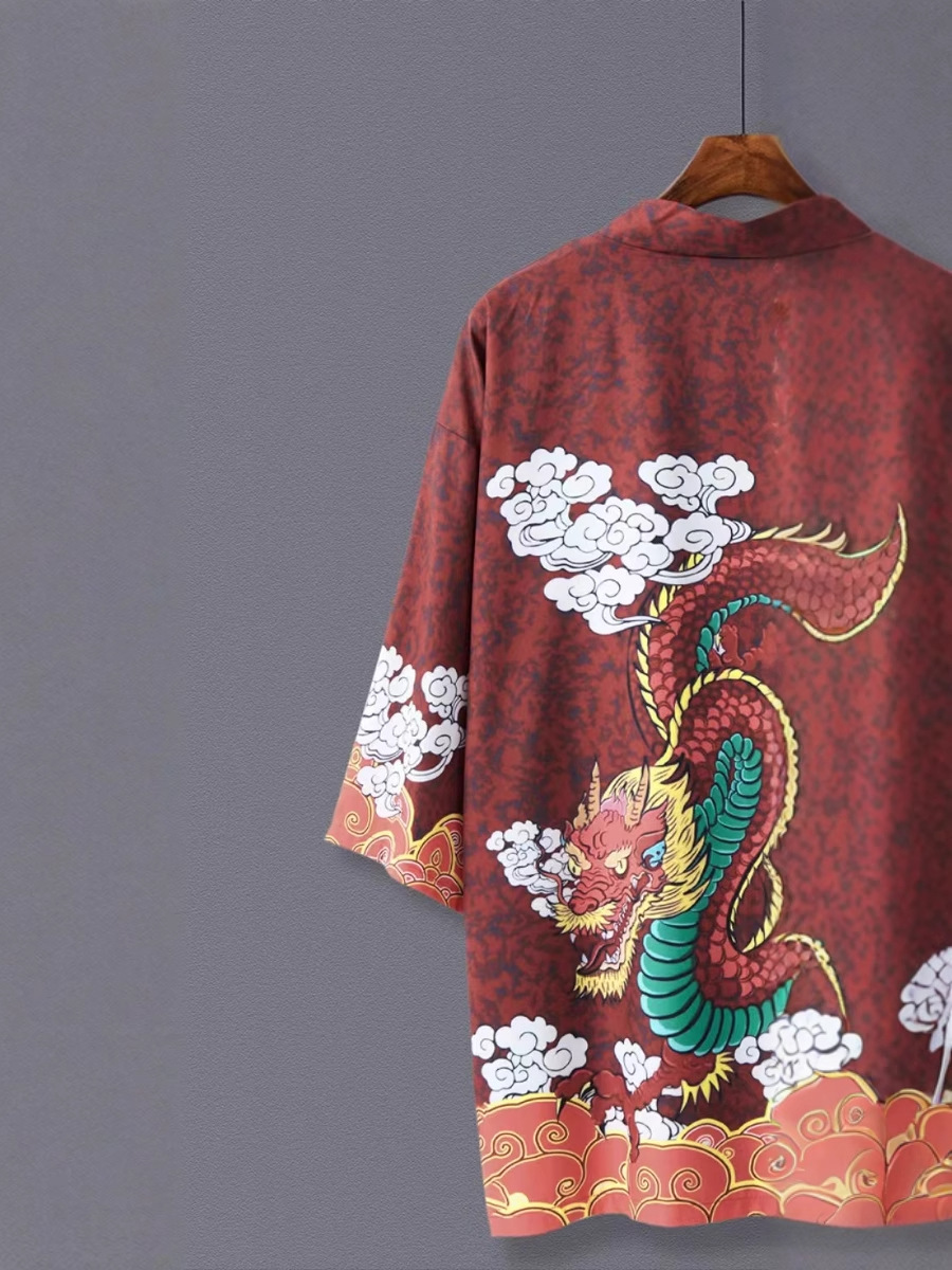 Халат с перьями в японском стиле, кимоно с принтом китайского дракона, кардиган, тонкое пальто унисекс, халат, европейский и американский модный тренд