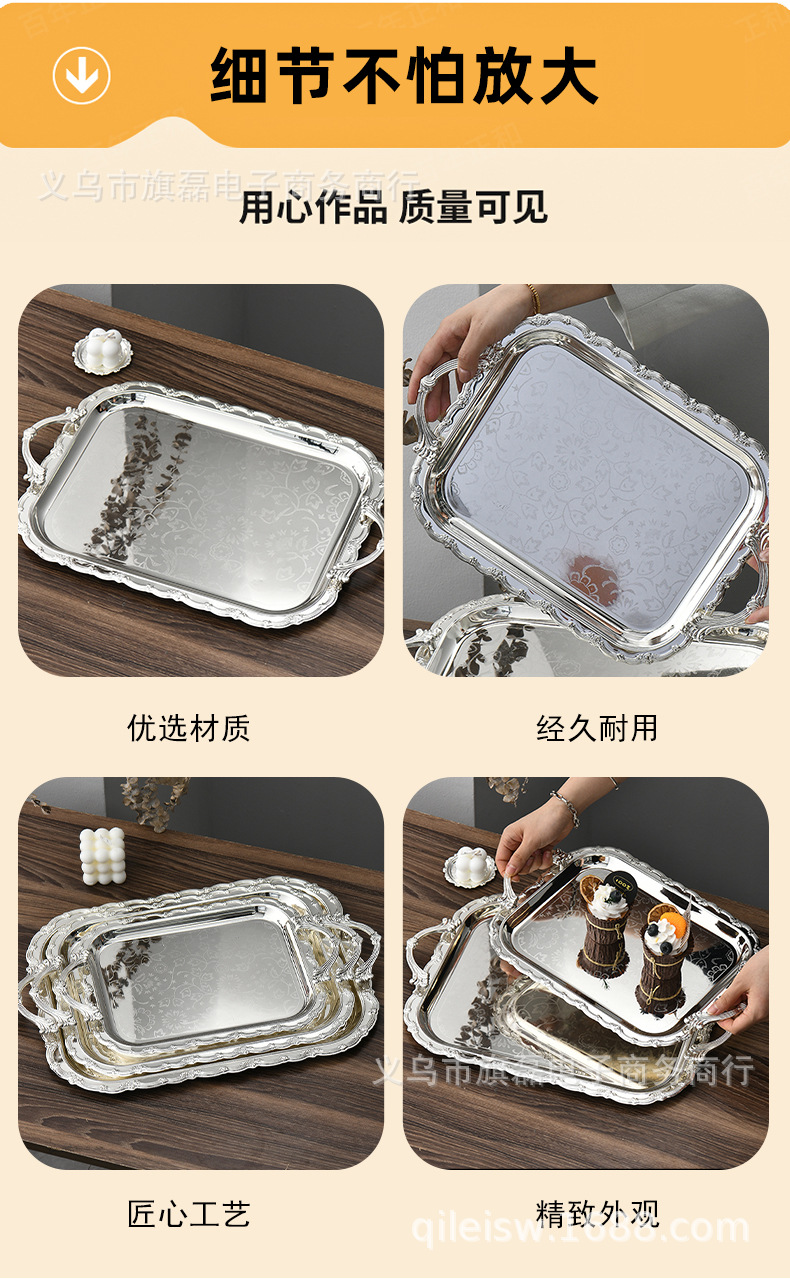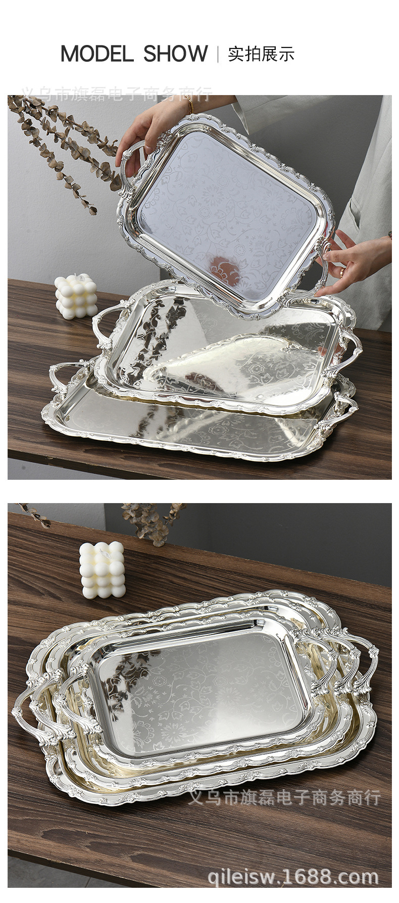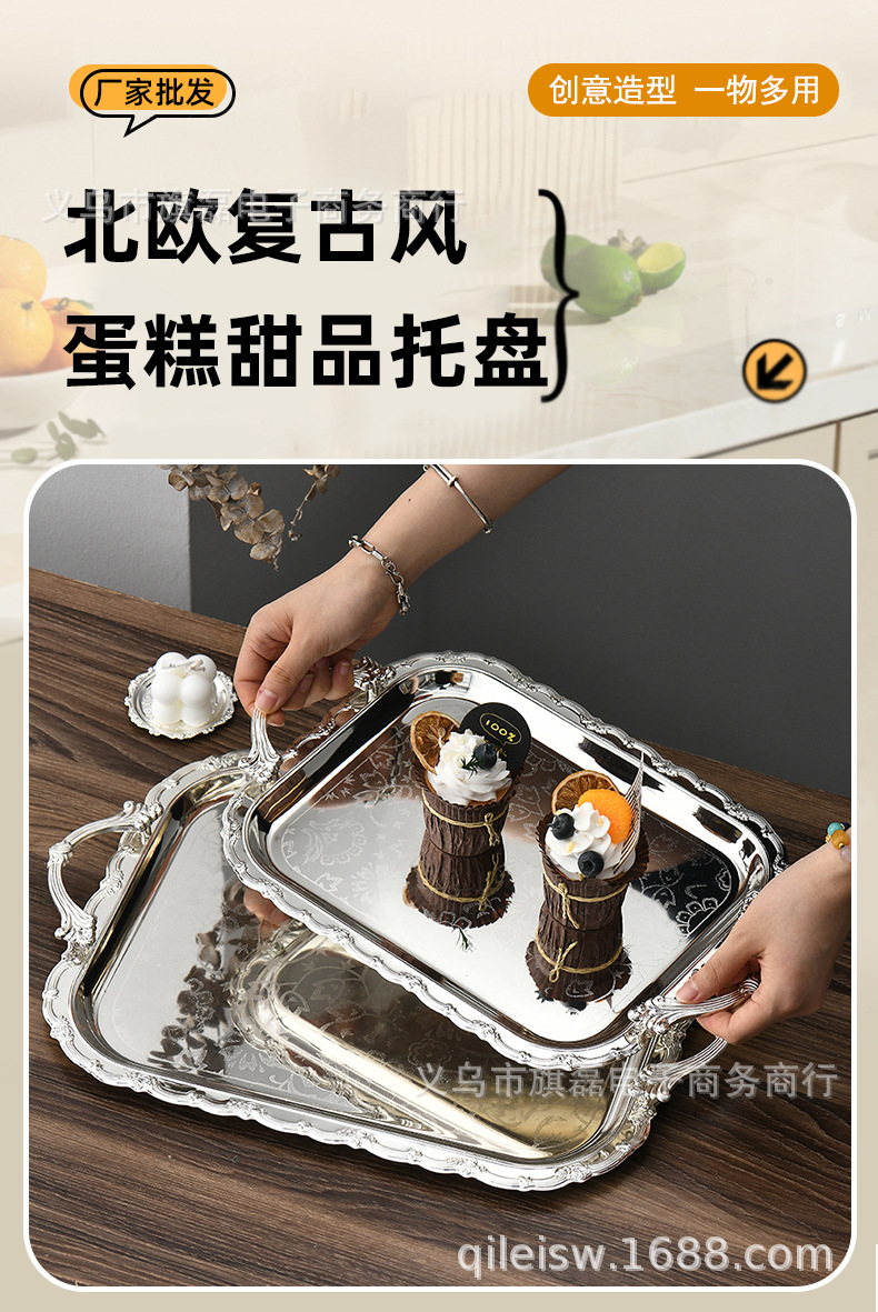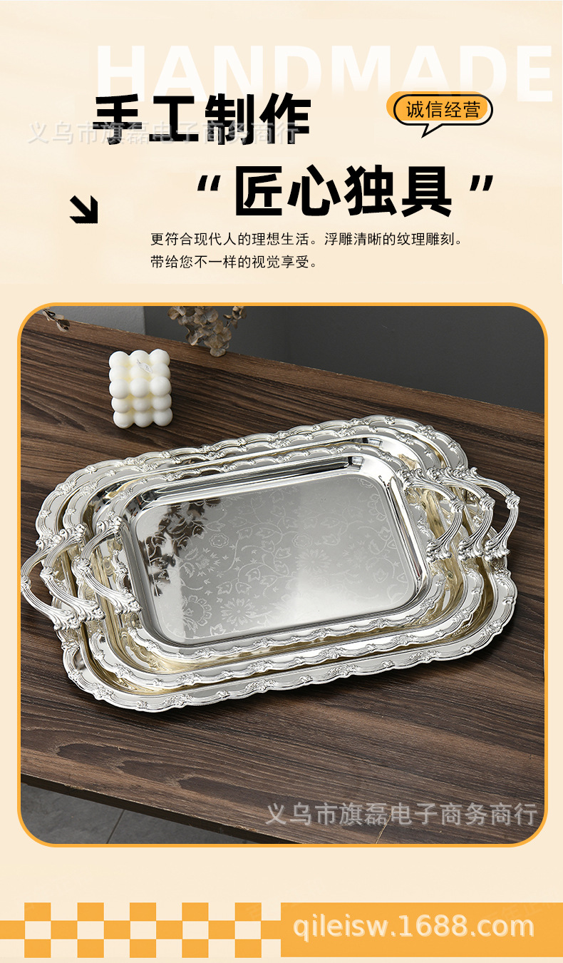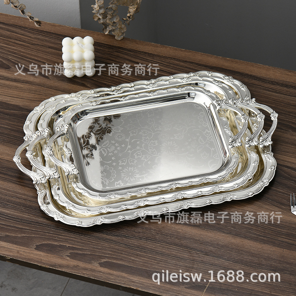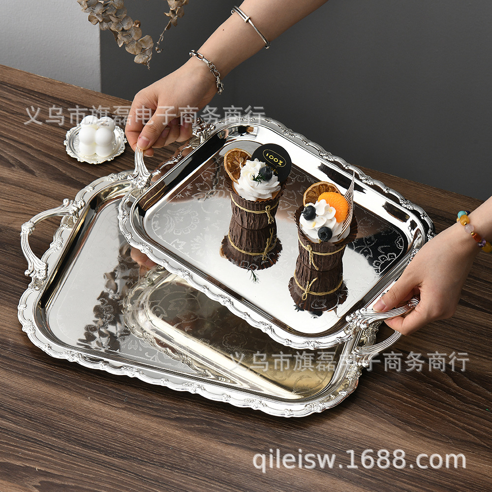 Прямоугольная десертная тарелка для фруктов из нержавеющей стали, европейского дизайна, для ресторанов, шведских столов и гостиниц.