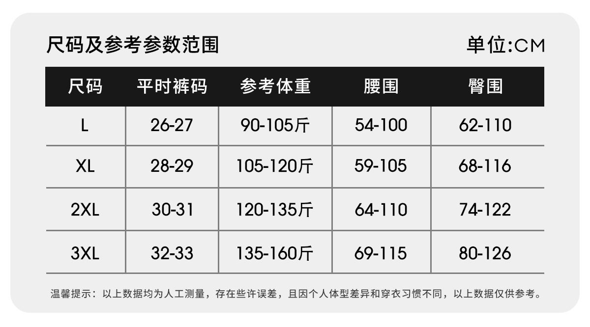 L (рекомендуется 45-52.5kg размер, соответствует размеру); XL (рекомендуется 52.5-60kg размер, соответствует размеру); 2XL (рекомендуется 60-67.5kg размер, соответствует размеру); 3XL (рекомендуется 67.5-80kg размер, соответствует размеру)