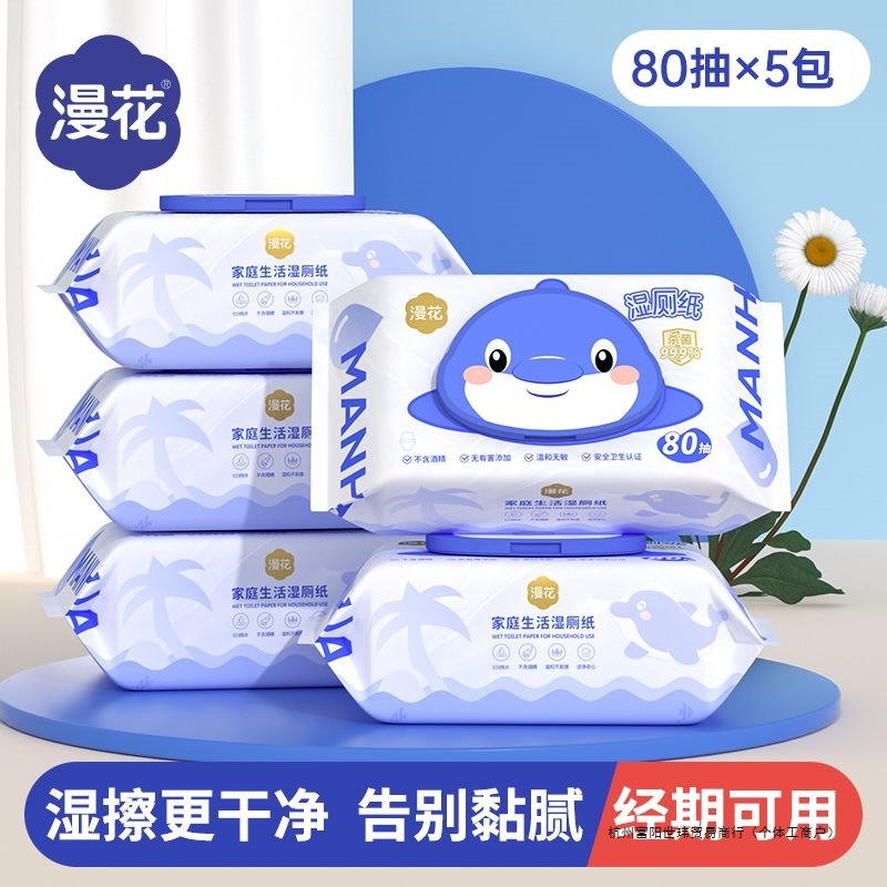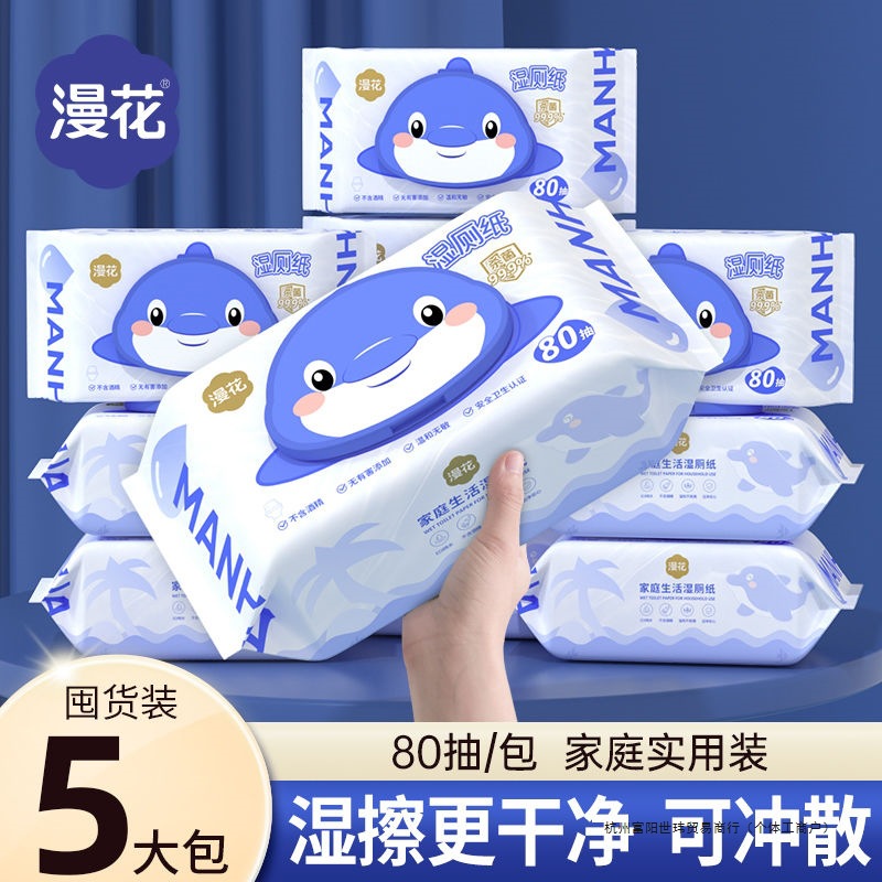 Влажная туалетная бумага Manhua, большая упаковка, 80 влажных салфеток, очень большая и утолщенная семейная упаковка, женский менструальный период, беременные женщины могут смывать влажную туалетную бумагу