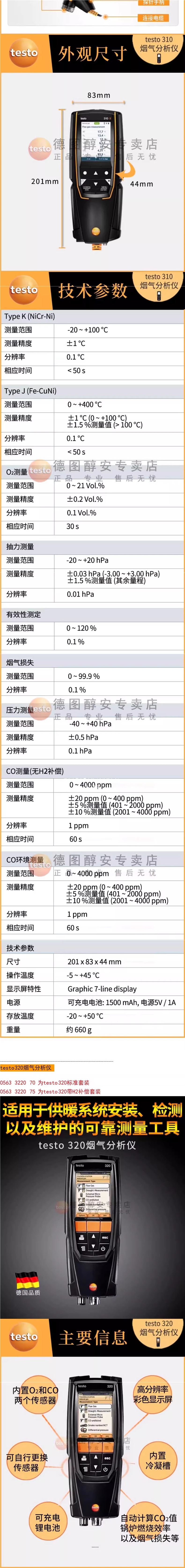 Testo testo310 анализатор дымовых газов котла немецкий 320 портативный набор для обнаружения эффективности сгорания газа
