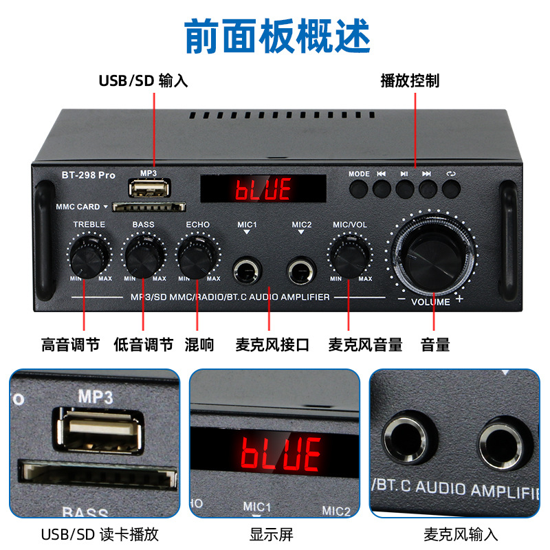 Новый цифровой усилитель BT-298 PRO с Bluetooth, USB-диском и двумя каналами