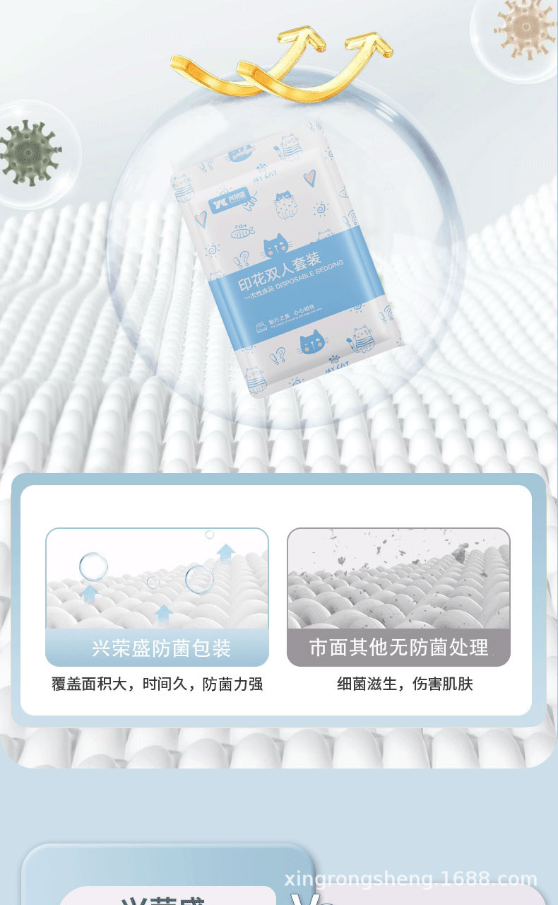 Одноразовый печатный набор из четырех предметов для изоляции бактерий и грязи, гостиничный номер для путешествий, большая спальня, стандартный номер, универсальный, приятный для кожи и мягкий GG