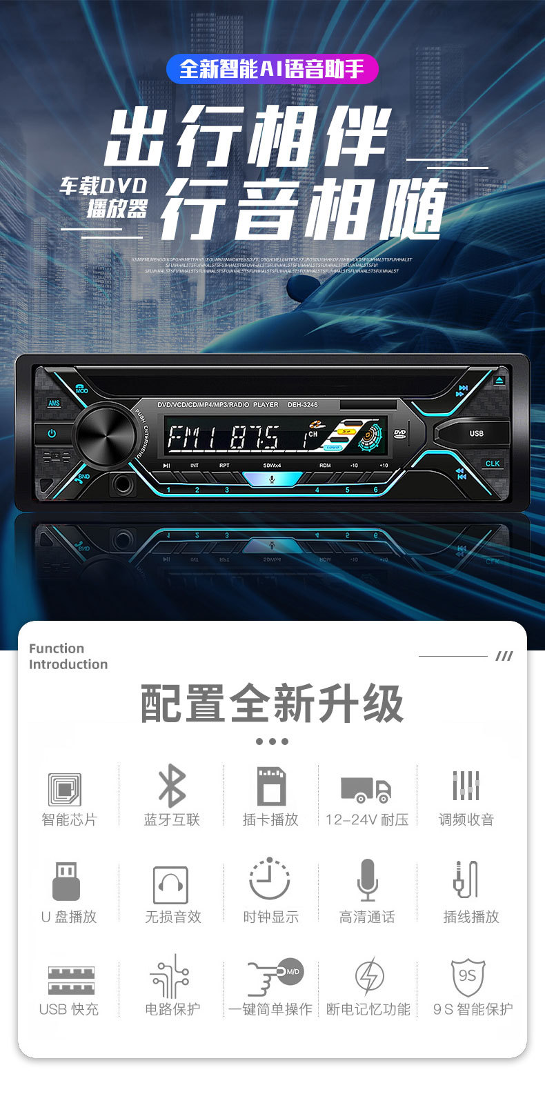 Автомобильный DVD-плеер, радио, однопозиционный, напряжение 12 В, автомобильный DVD-аудио, Bluetooth, HD-аудио и видео