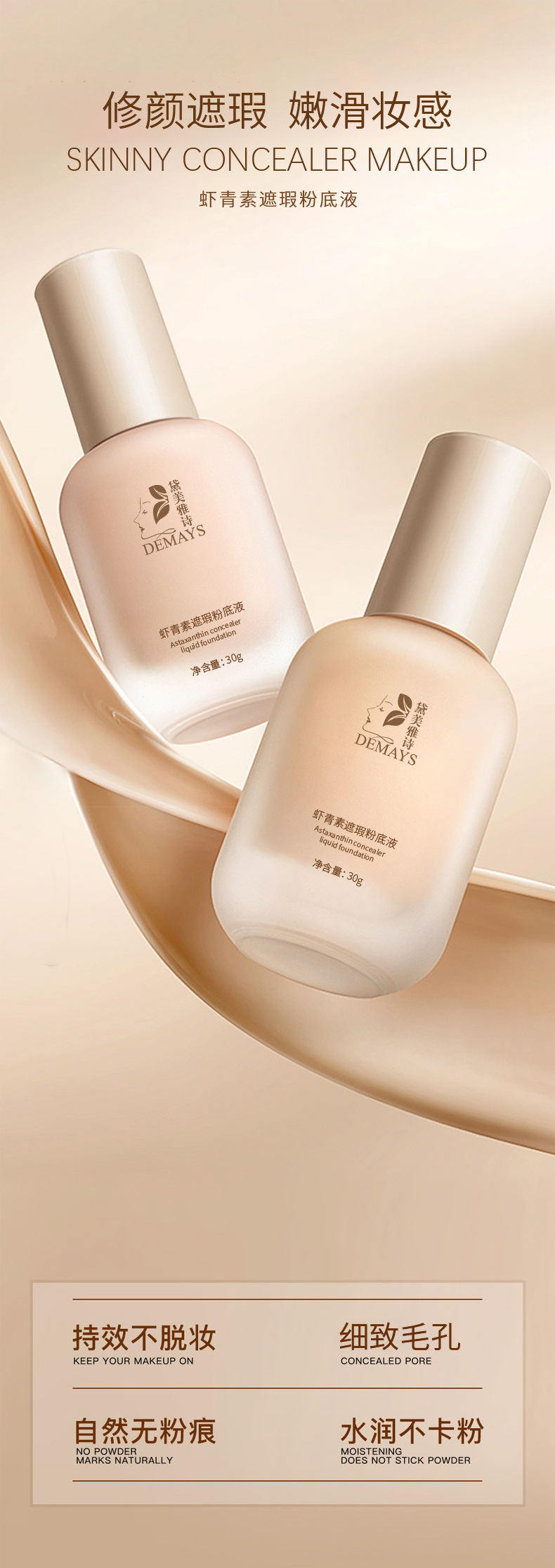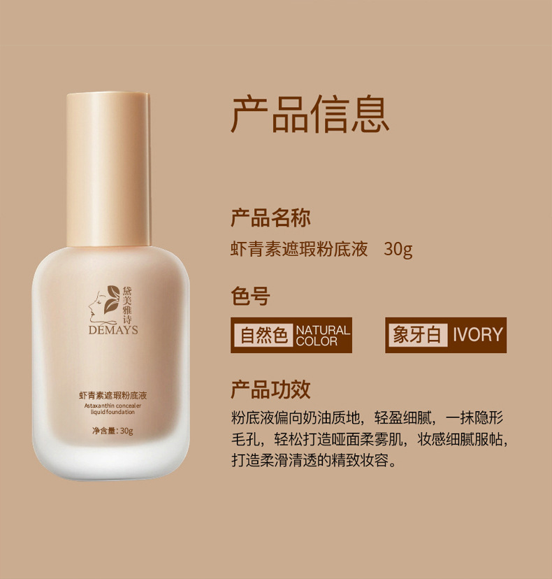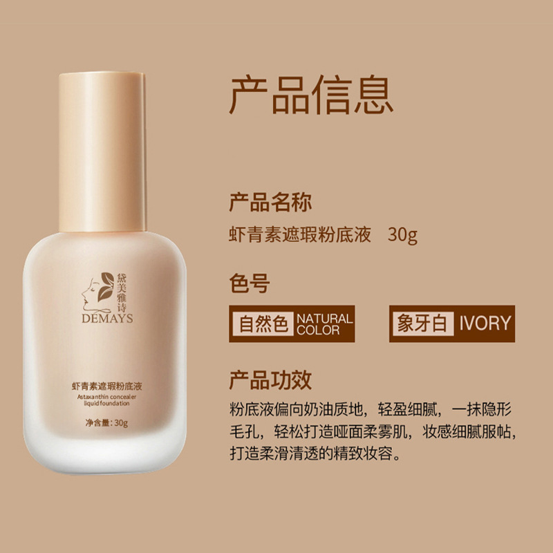 Жидкий консилер-основа с астаксантином, OEM/ODM, на заказ, легкий, увлажняющий, не скатывается, осветляющий, стойкий макияж