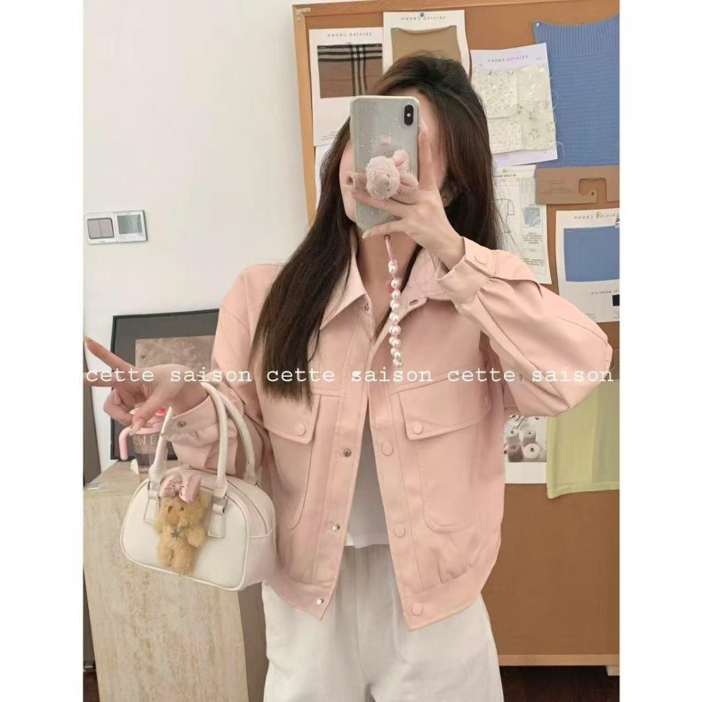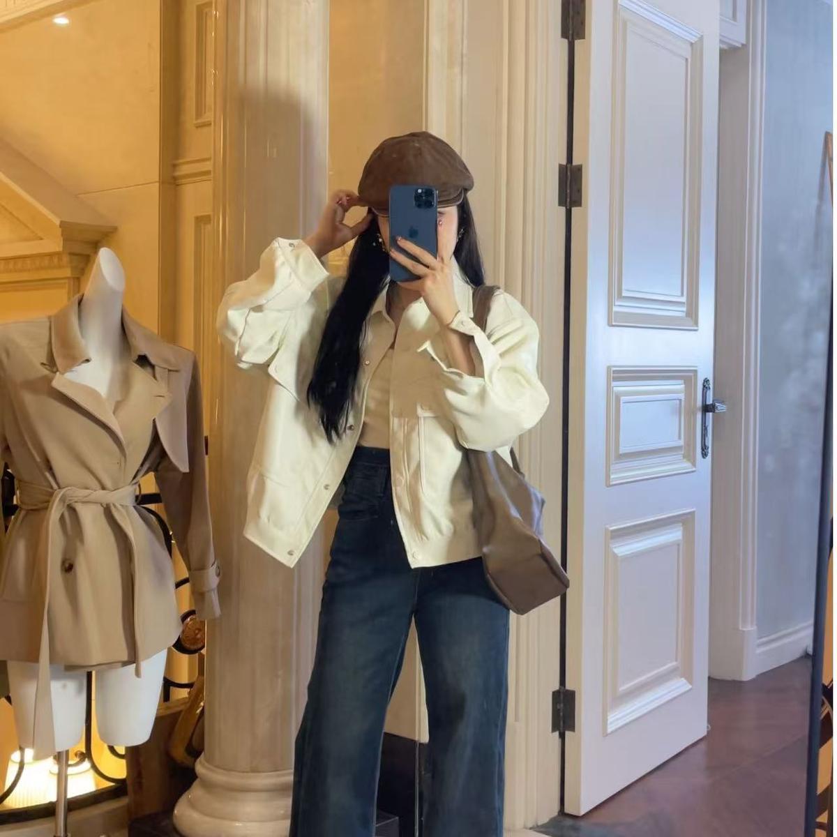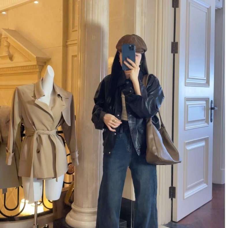 [Рекомендация нового стиля] Кожаная куртка женская, весна 2025, новый стиль, свободная повседневная кожаная куртка с воротником-поло, женская кожаная куртка высокого класса