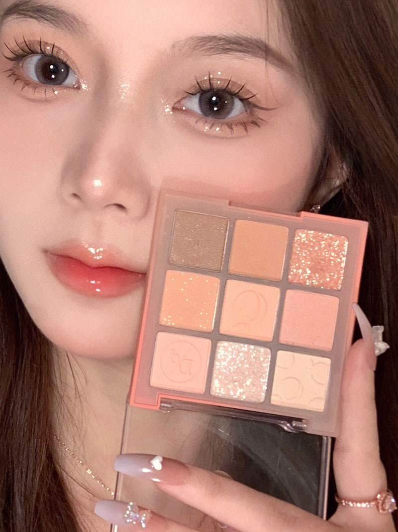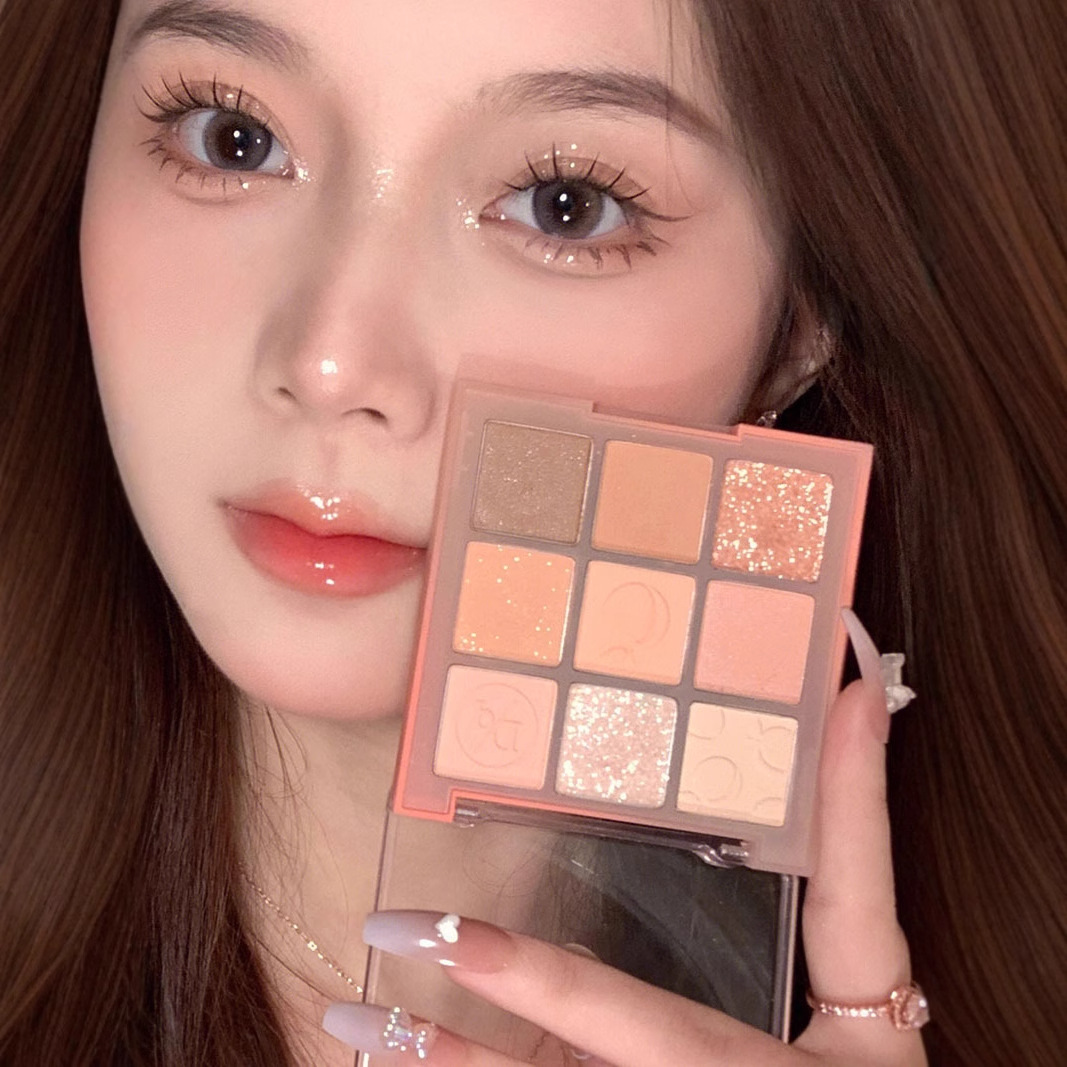 MUGELEEN прозрачный крем персиковый девятицветный тени для век низкой насыщенности розовый оранжевый прозрачный легкий макияж корейская палитра теней для век