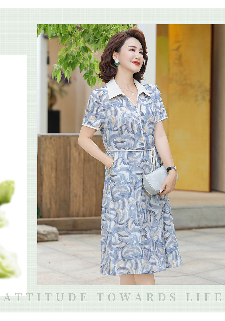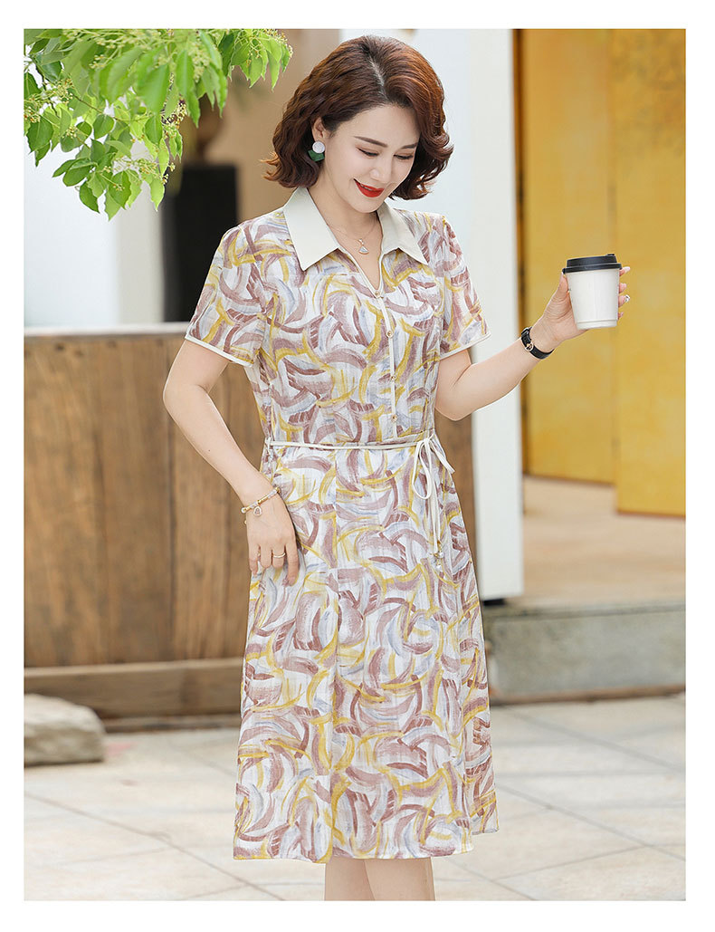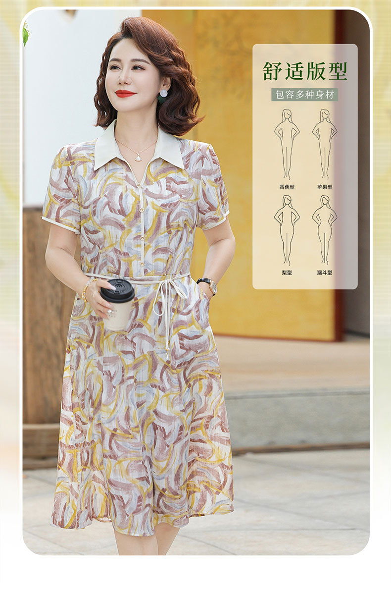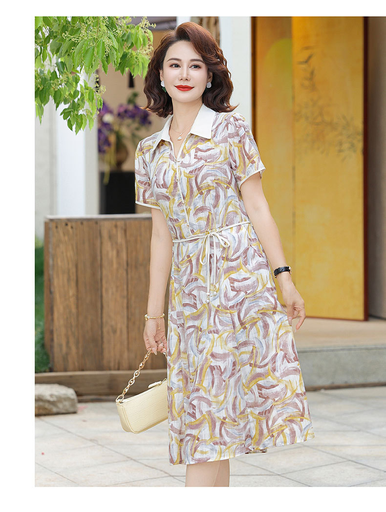 Новое летнее платье для молодой мамы с лацканами и принтом длиной до колена, женская мода среднего и пожилого возраста, юбка трапециевидной формы большого размера