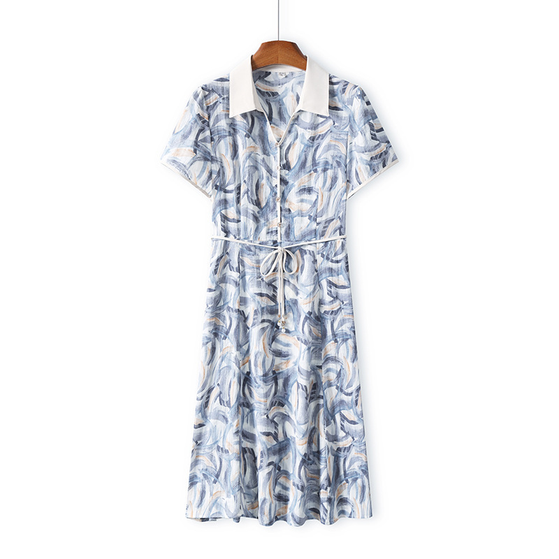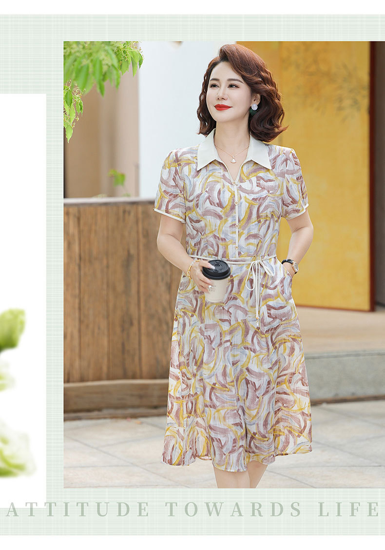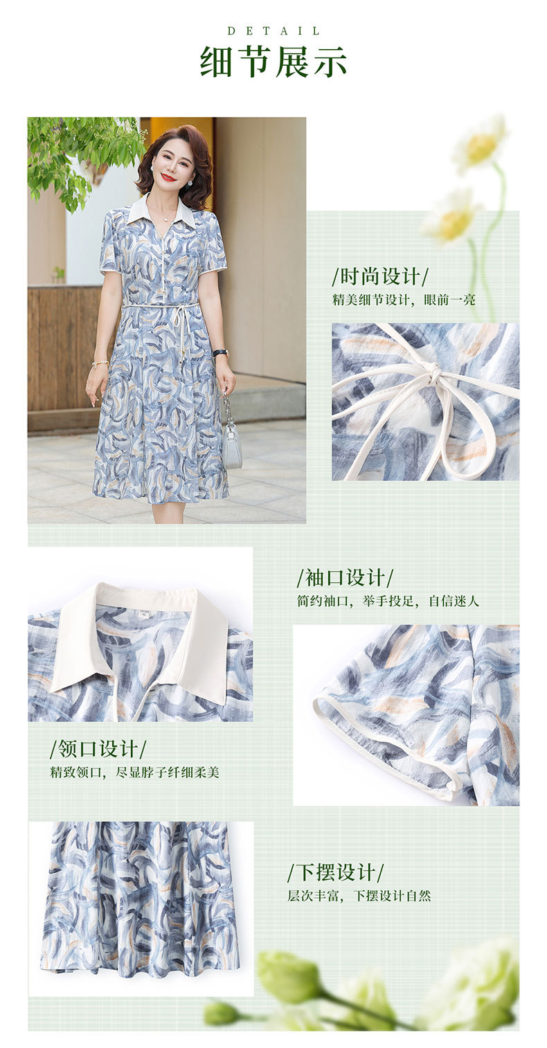 Новое летнее платье для молодой мамы с лацканами и принтом длиной до колена, женская мода среднего и пожилого возраста, юбка трапециевидной формы большого размера