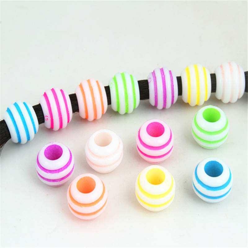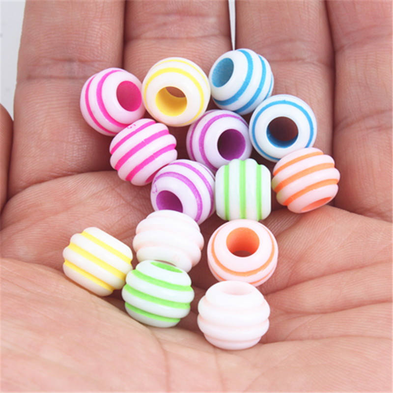 Ювелирные изделия для дредов, головные уборы, плетеные бусины, аксессуары для волос для девочек, полосатые бусины с большими отверстиями, аксессуары для ювелирных изделий «сделай сам», красочные акриловые бусины