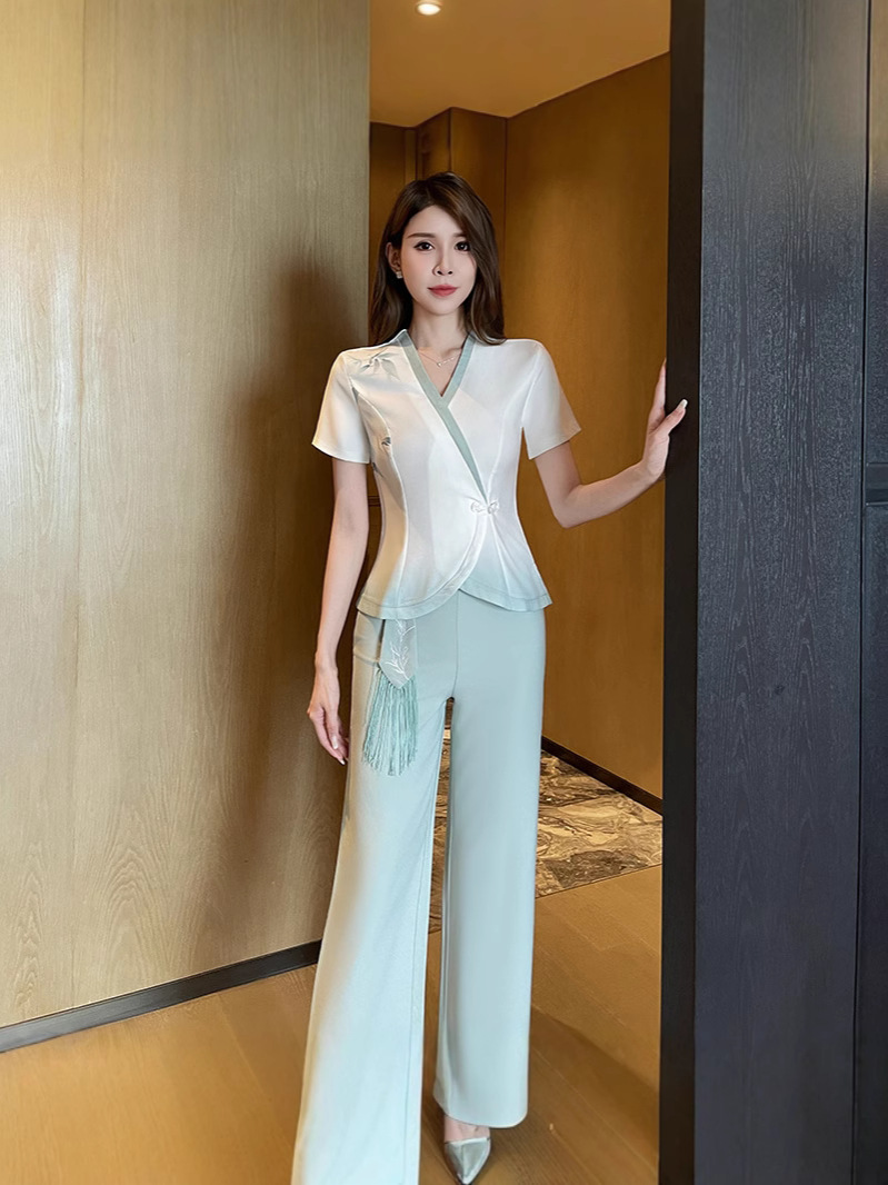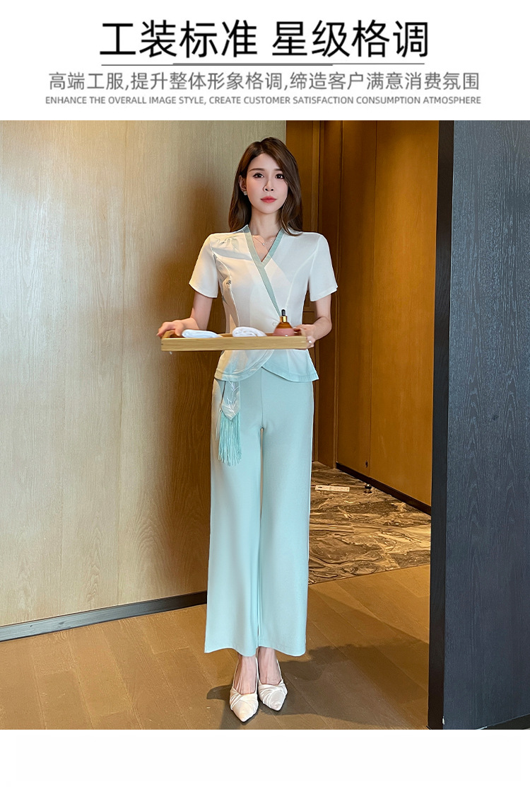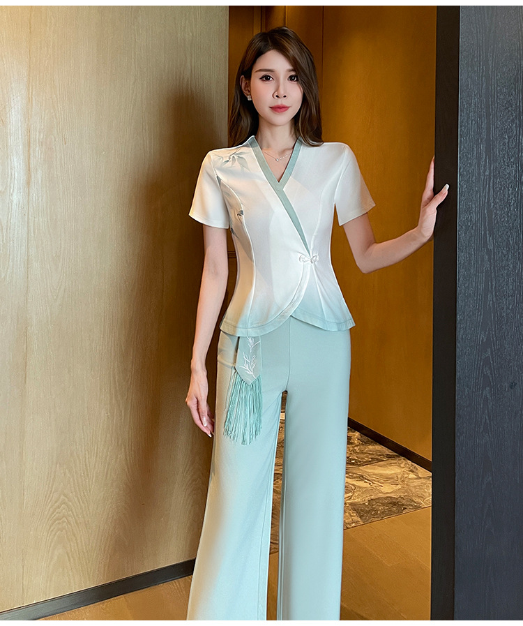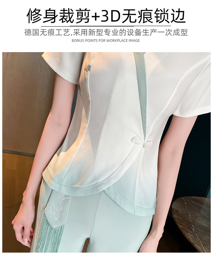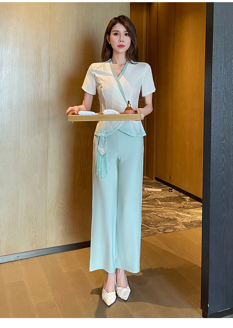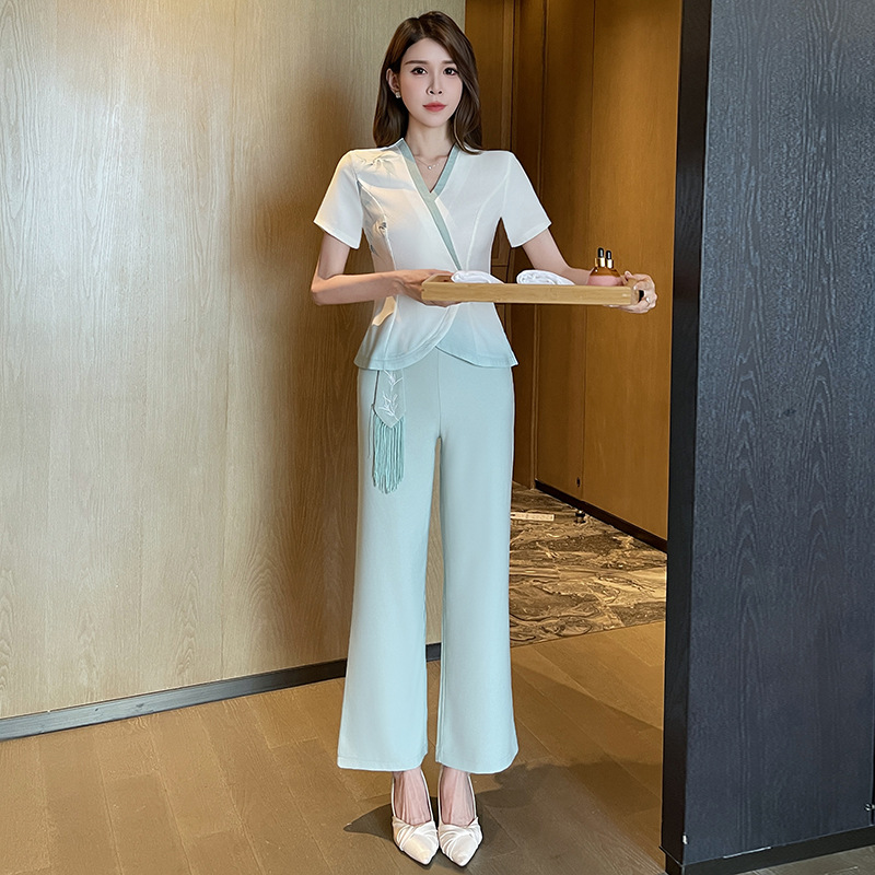 Рабочая одежда для салона красоты для женщин, элегантный костюм для центра здоровья, техник по мокса-терапии, физиотерапии, китайский стиль, летний женский костюм 1508 с короткими рукавами