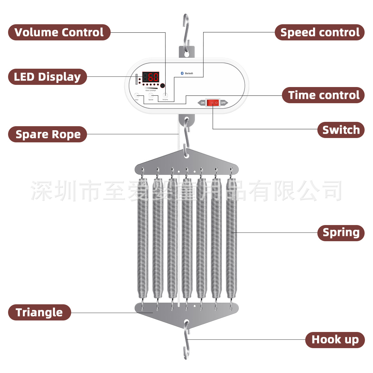 Электронная детская колыбель Bluetooth с музыкой и дистанционным управлением, 7 пружин с крючком и веревкой