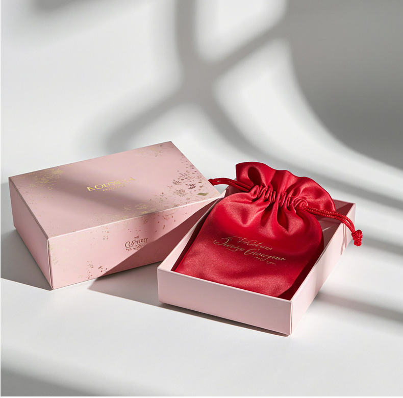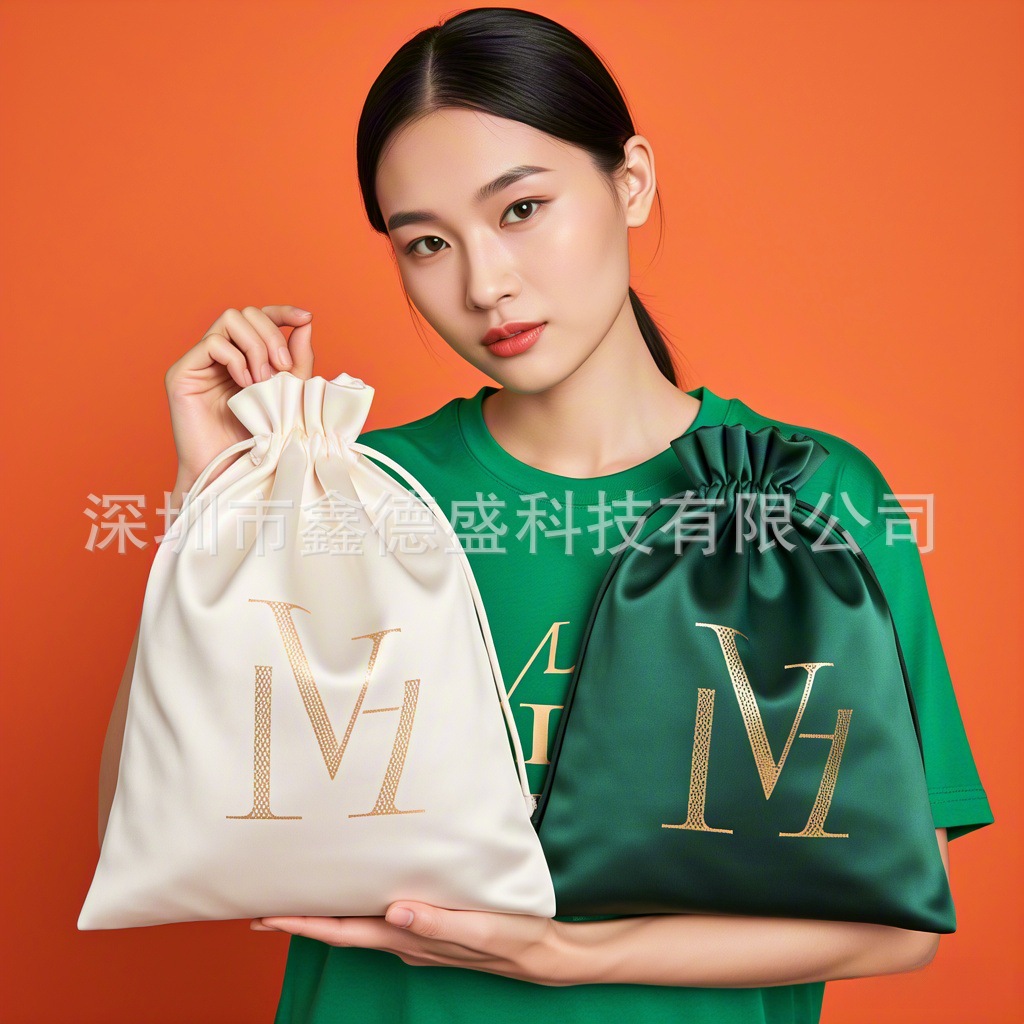 Кастомный простой атласный мешочек на шнурке, высококачественная имитация шелка, пылезащитный мешочек для хранения украшений из атласного шелка.
