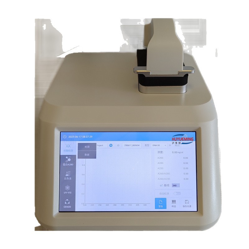 *开机无需预热,直接使用,可随时检测;USB 数据输出方式,方便导出数据进行相应分析;将样品直接点于加样平台上,无需稀释,可测样品浓度为常规紫外 - 可见分光光度计的 50 倍,结果直接输出为样品浓度,无需额外计算