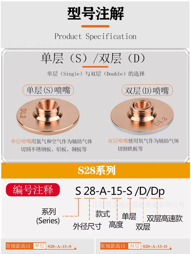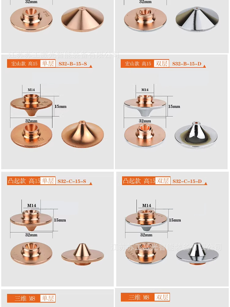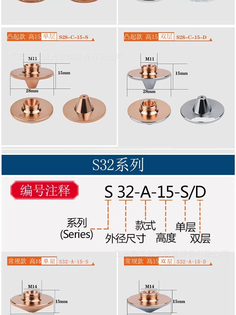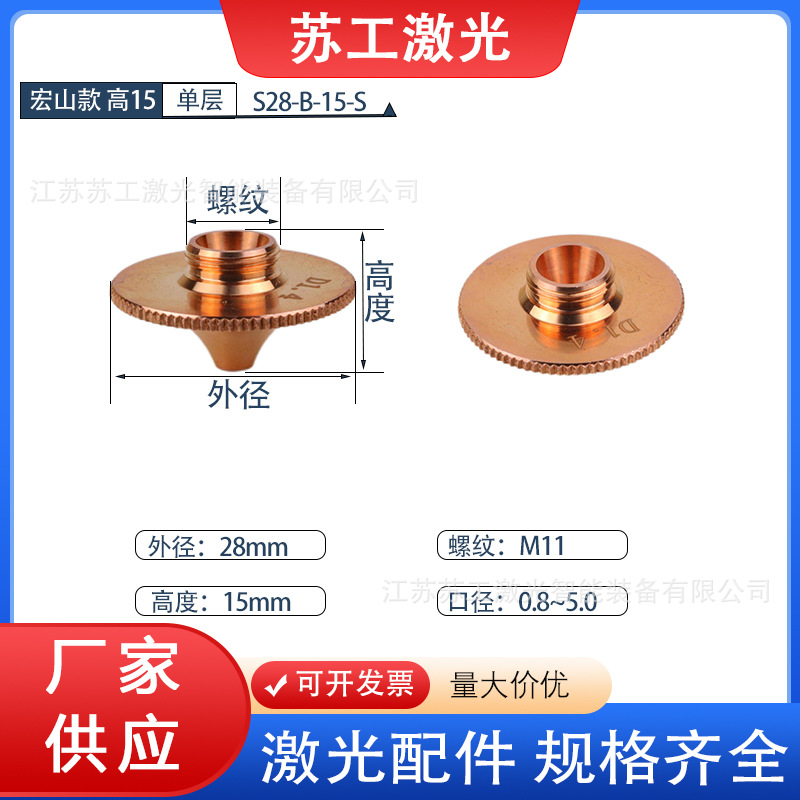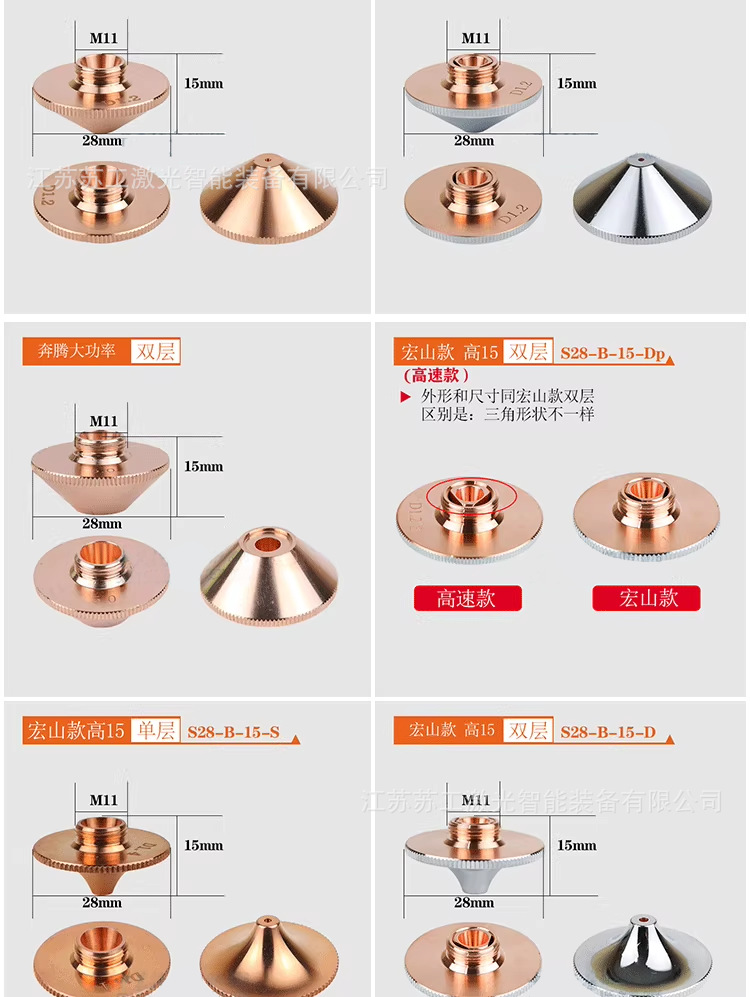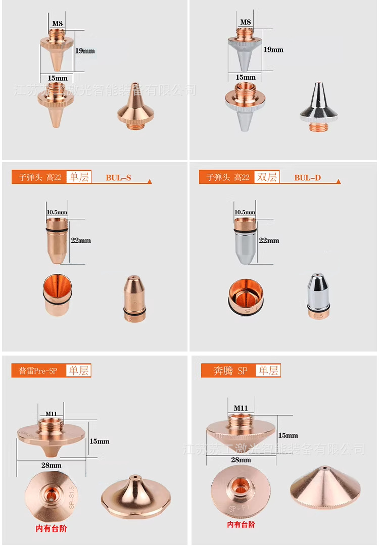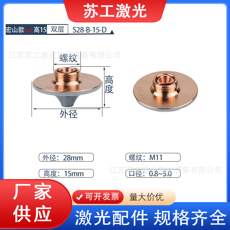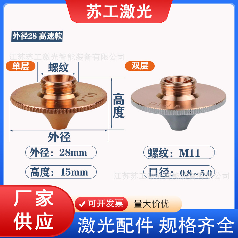 Лазерная насадка 28 мм для станка лазерной резки, медная режущая насадка с вогнутым концом, модель DE, для однослойной и двухслойной резки, с защитой от столкновений