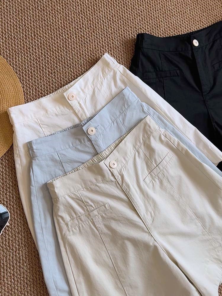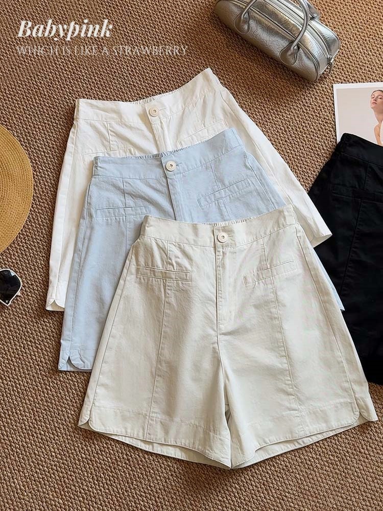 Шорты с пятью точками, новинка 2025 года, универсальные повседневные элегантные узкие брюки трапециевидной формы из нового стираного хлопка, широкие летние брюки с высокой талией