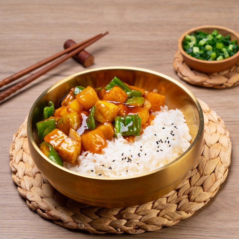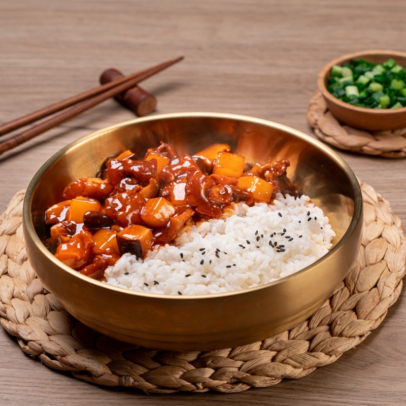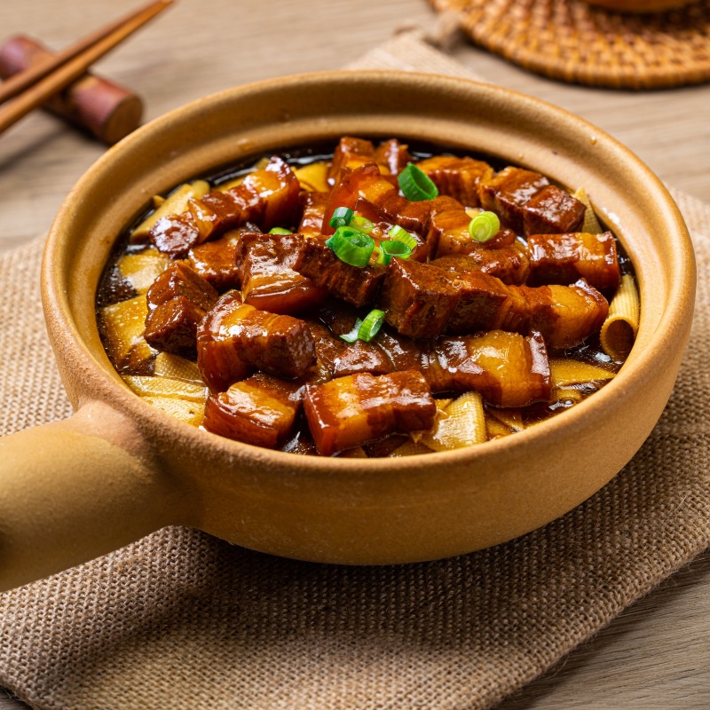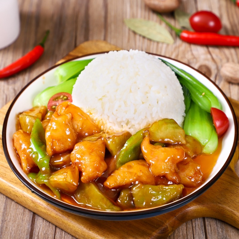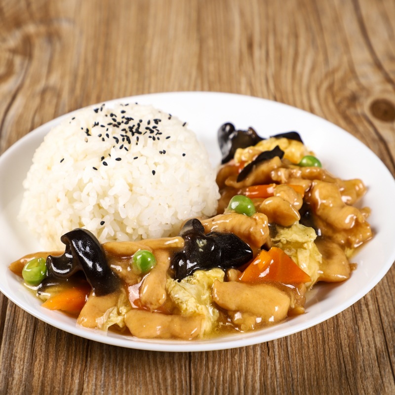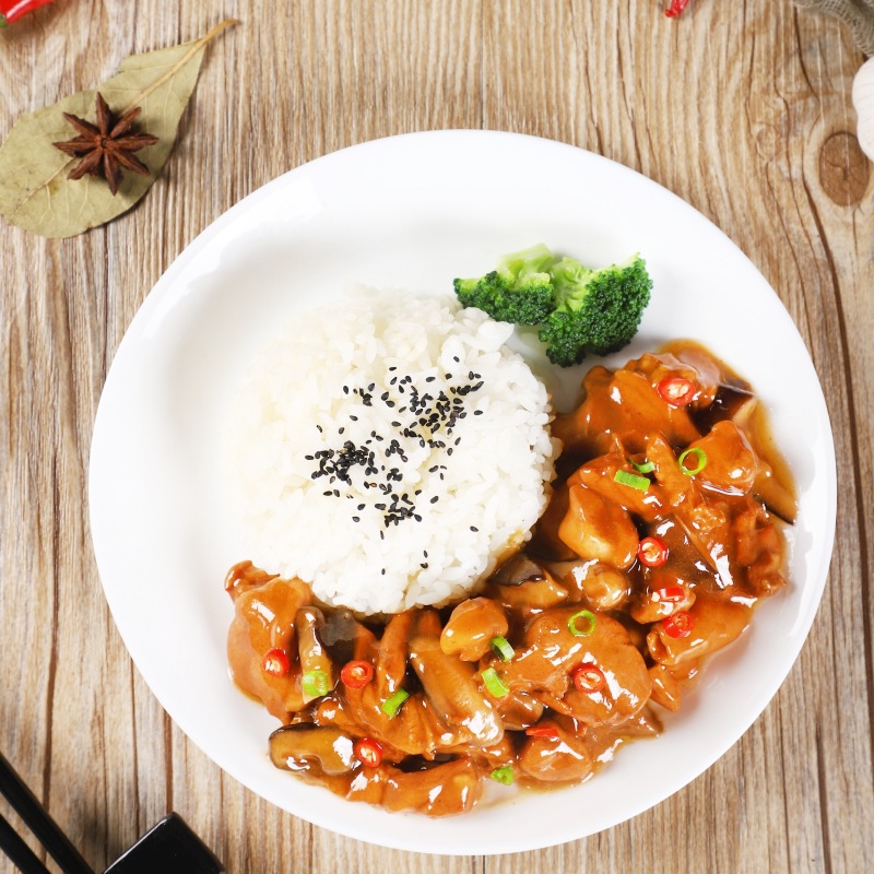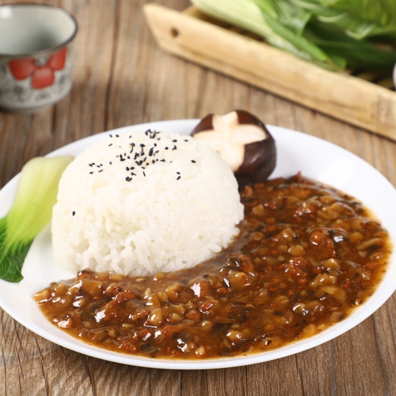 Тушеная курица 245 г; Куриные ножки Орлеан 200г; 220 г свинины с зелёной фасолью; Вегетарианское карри 200 г; Курица на трёх чашках на сланце (400 г); Фирменный баклажан 250 г; 250 г измельчённого баклажана; Золотая медаль Баклажан 245 г; Три деликатеса земли 245г; Тушёный баклажан с кусочками мяса, 260 г; Курица карри 260 г; Курица Кунг Пао 220 г; Куриные ножки в терияки, 220 г; Курица с черным перцем, 245 г; Жареная курица 245 г; Свинина в рыбном соусе, измельчённая, 240 г; Тайваньская тушёная свинина 235 г; Перцовый мясной продукт для защиты сердца, 235 г; Свиная грудинка с грибами шиитаке, тушёная, 225 г; Картофель с говядиной, 260 г; Говядина карри 260 г; Цзиньтоу Ба Нао 250 г; Мясо в обертке 310 г; Тофу с тушеной свининой 350 г