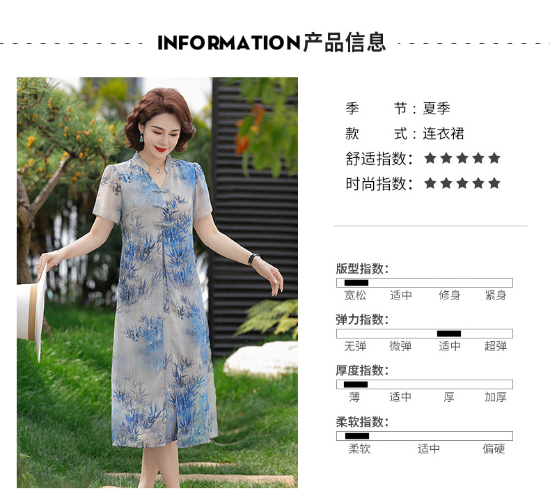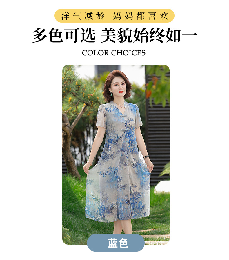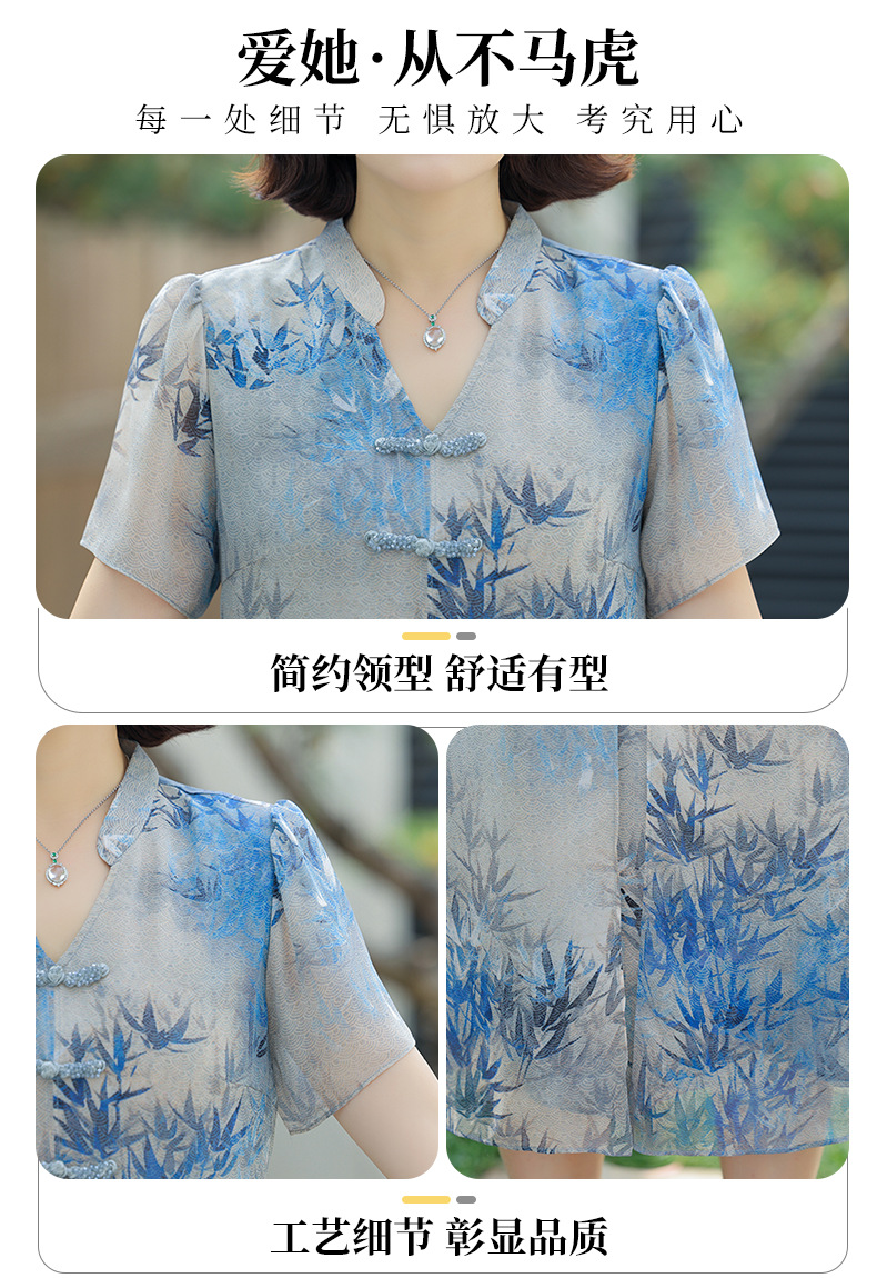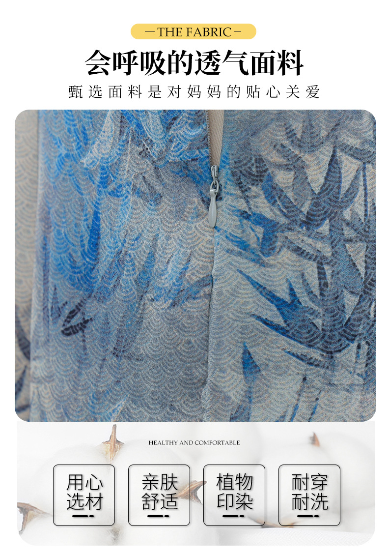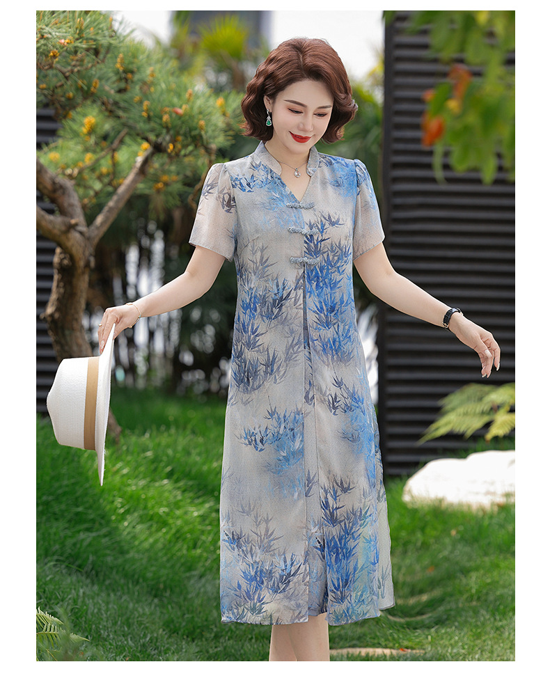 Новое стильное летнее шифоновое платье с короткими рукавами для мам, женская юбка средней длины с принтом в китайском стиле для женщин среднего и пожилого возраста.