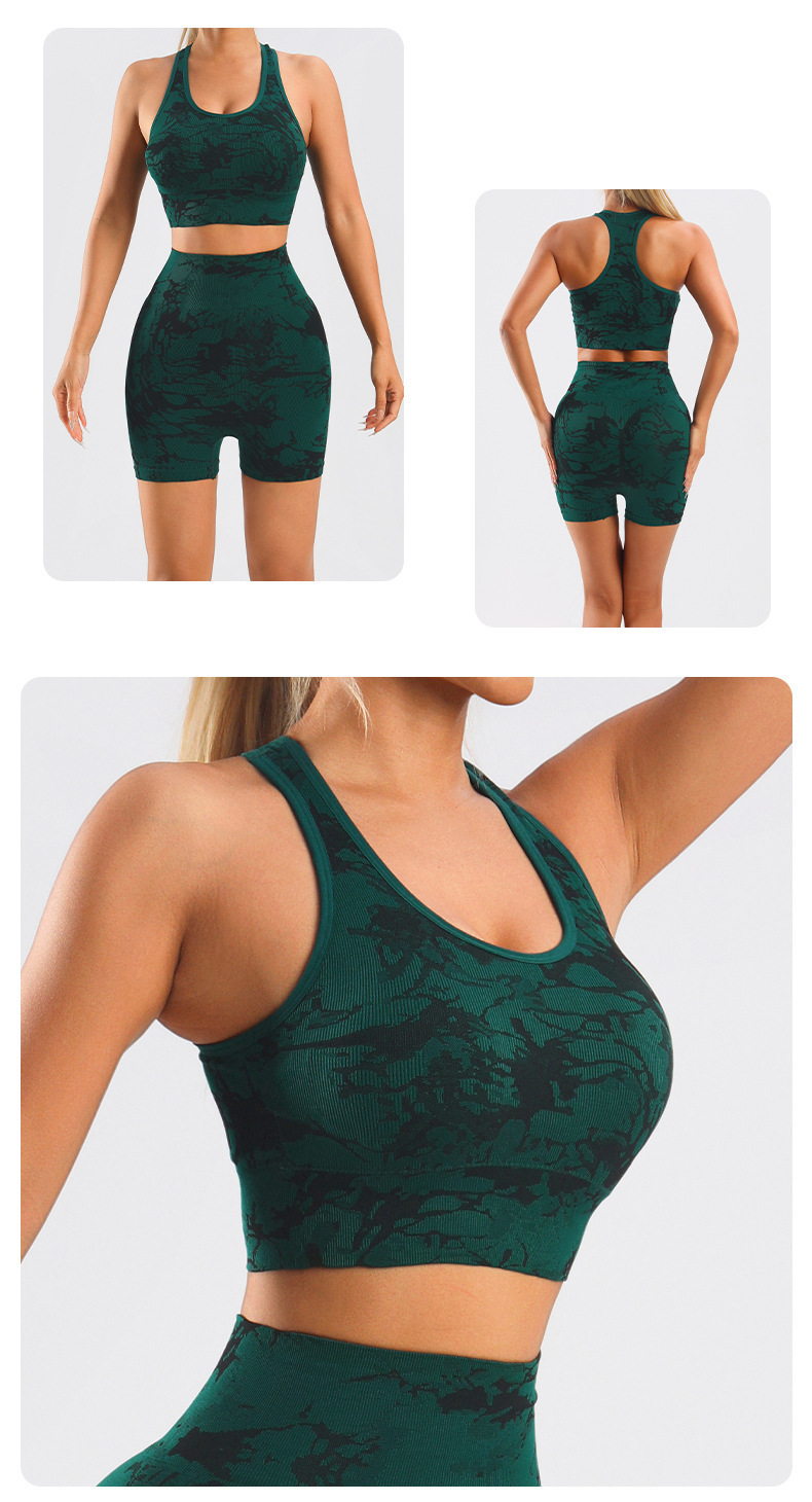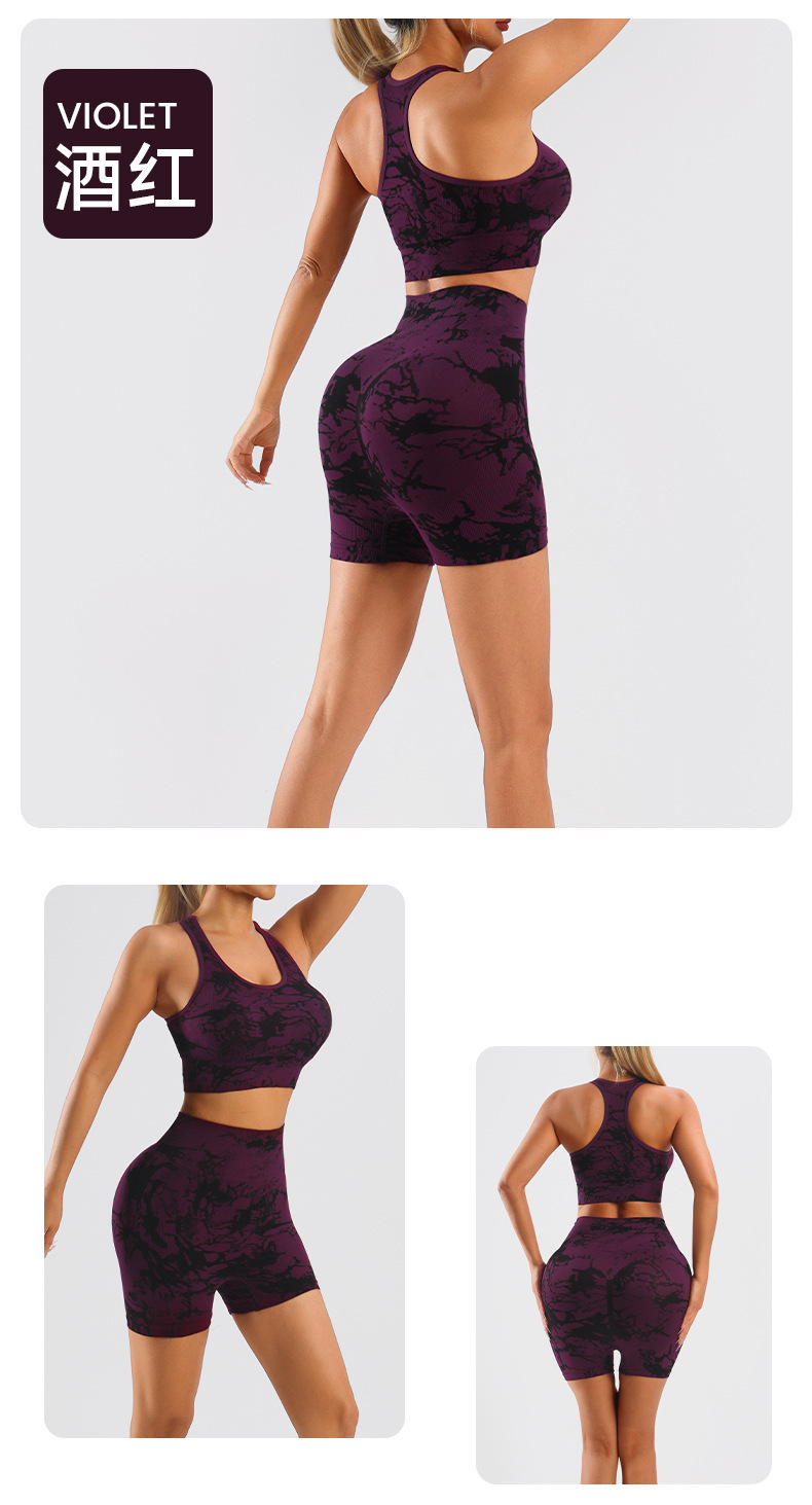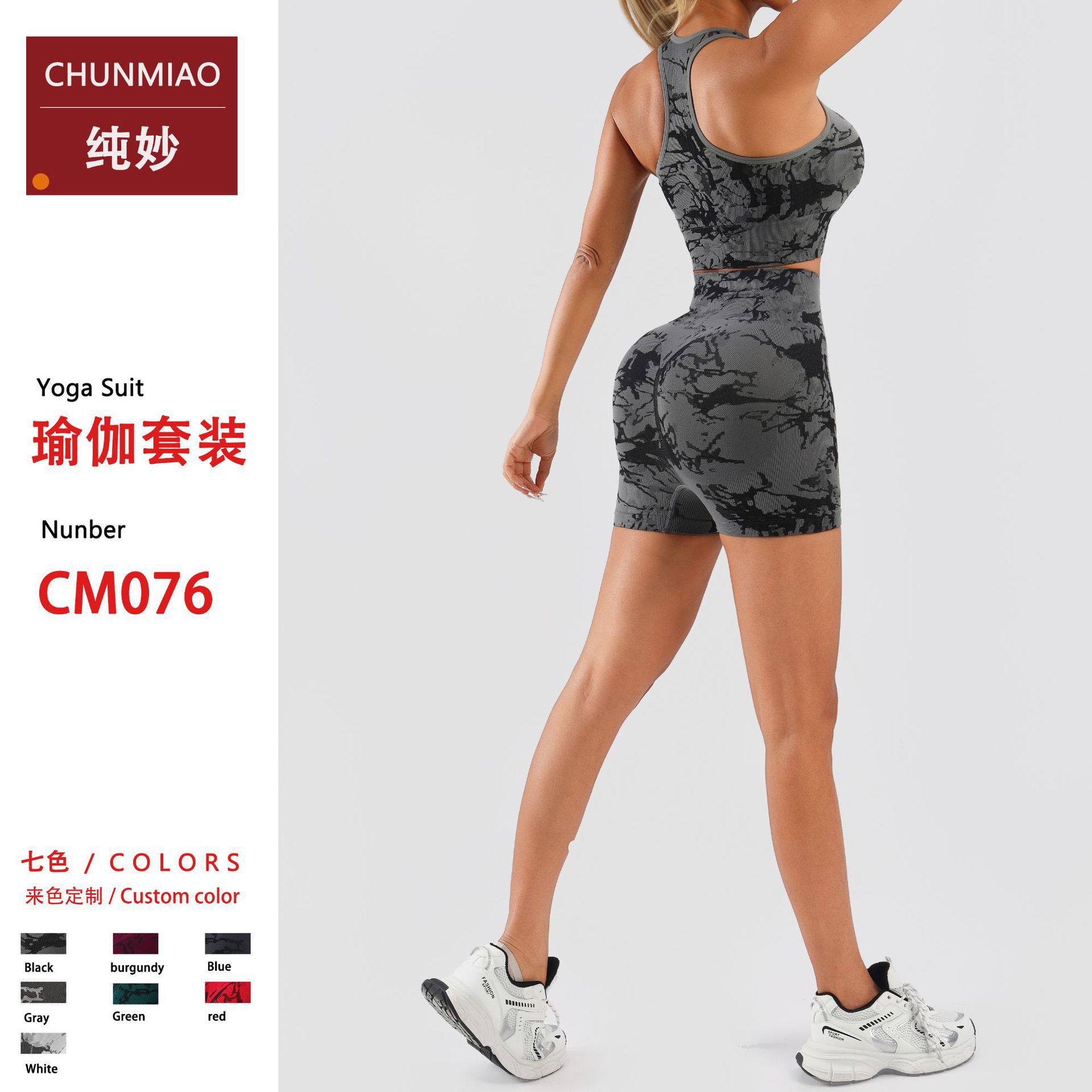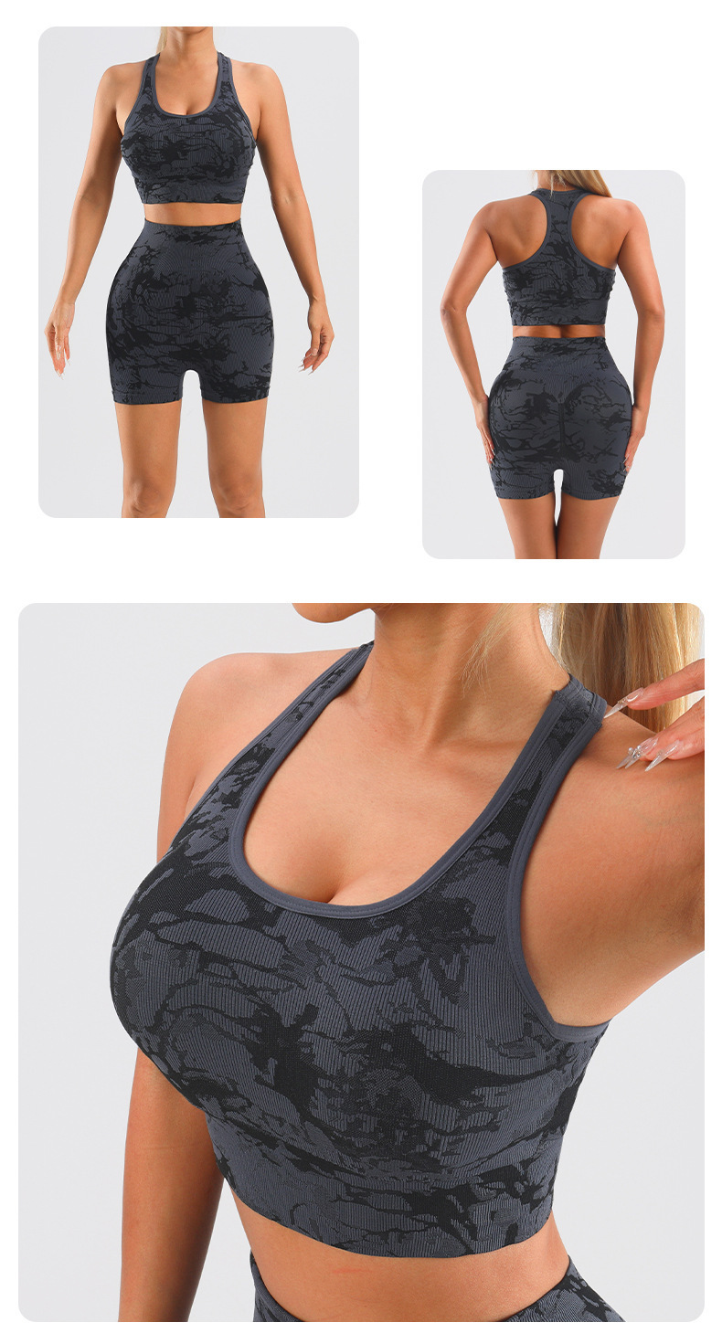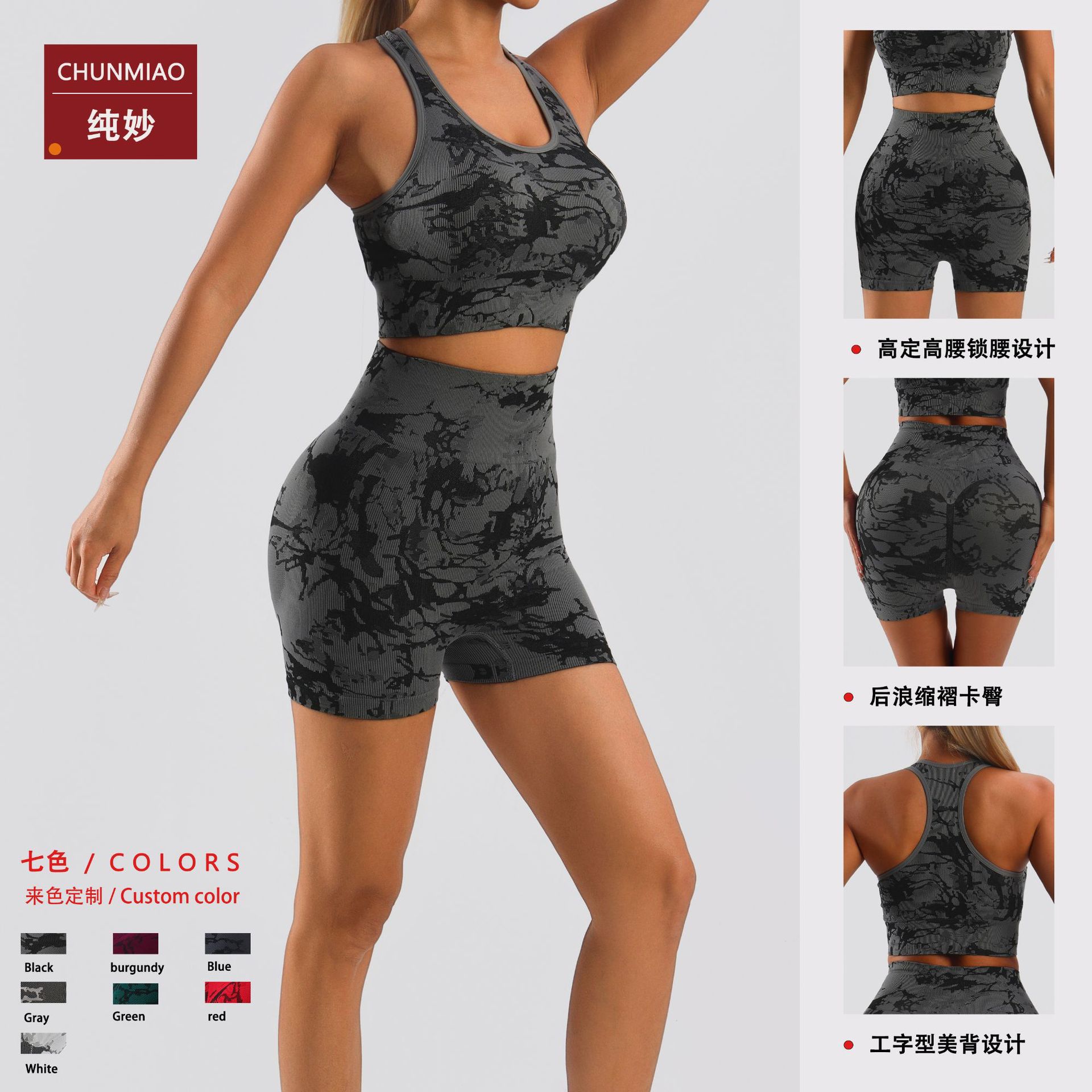 Бесшовные трикотажные жаккардовые шорты для йоги и фитнеса, быстросохнущие спортивные шорты персикового цвета с подушечками для груди и жилетом для подтягивания груди.