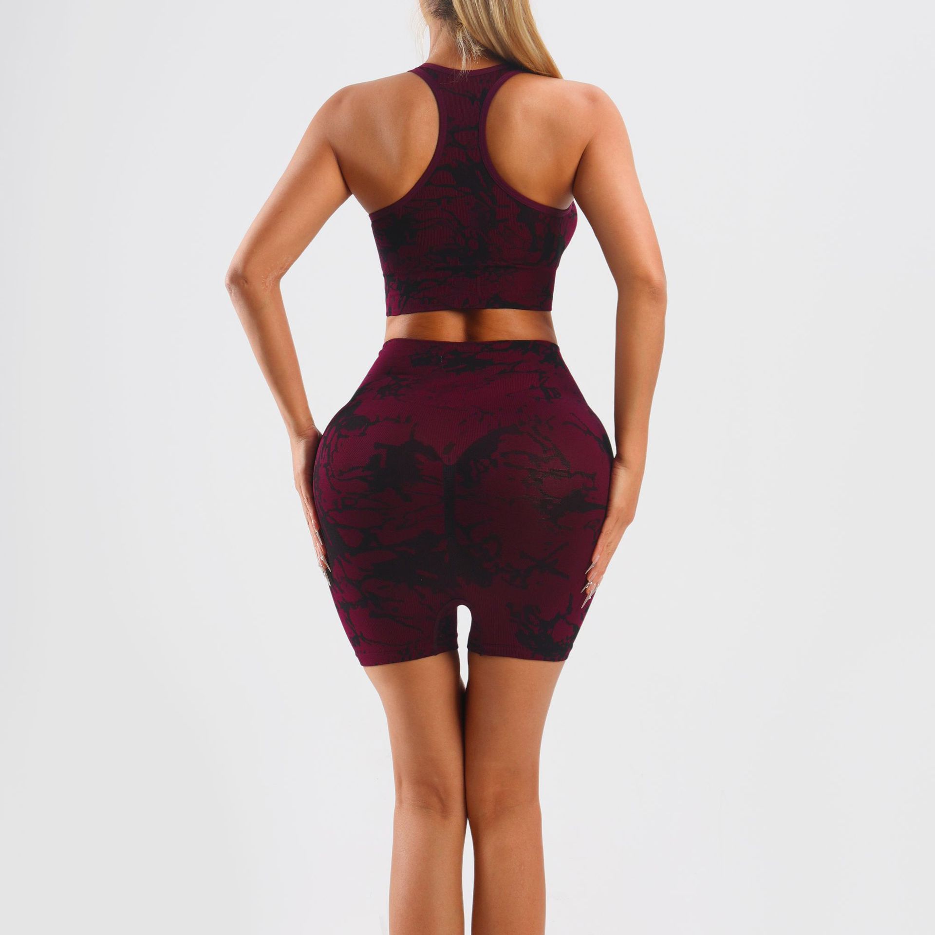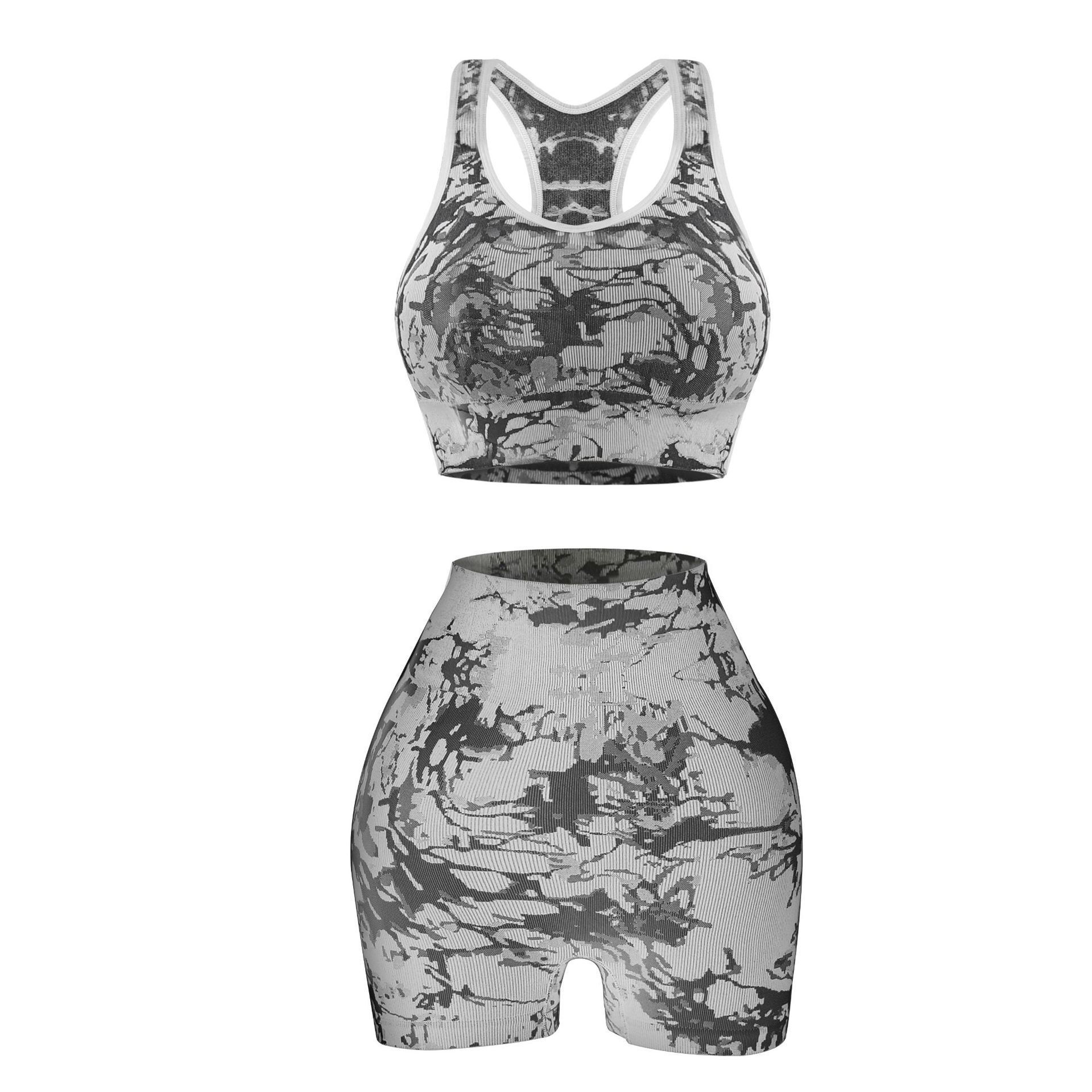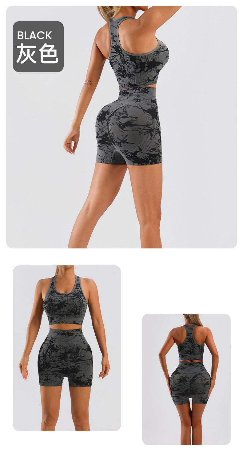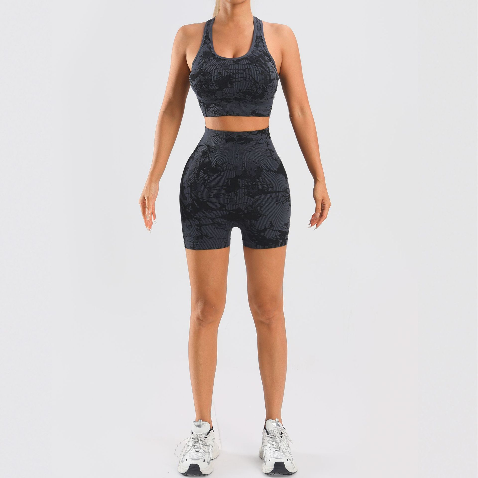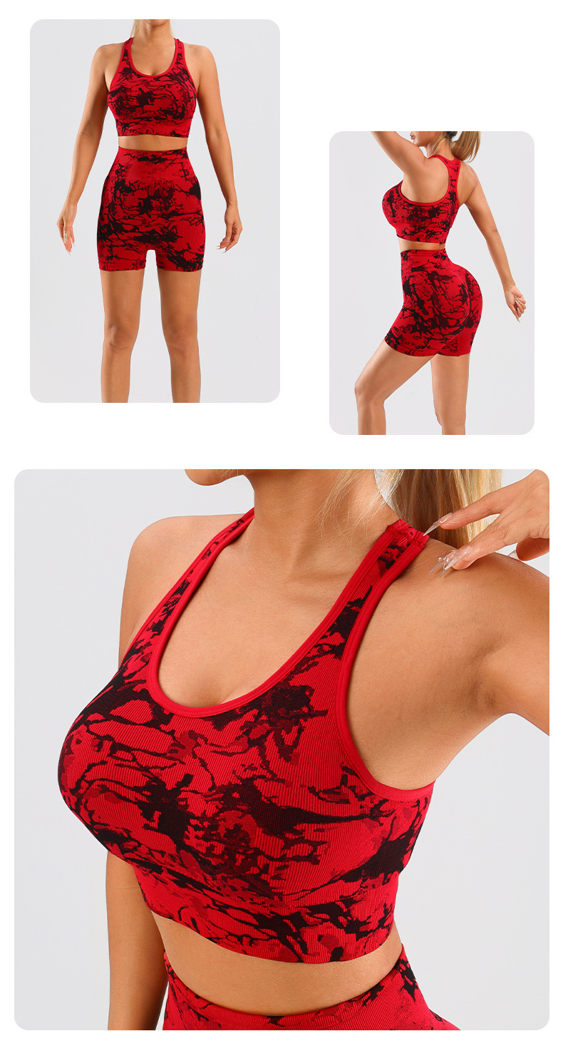 Бесшовные трикотажные жаккардовые шорты для йоги и фитнеса, быстросохнущие спортивные шорты персикового цвета с подушечками для груди и жилетом для подтягивания груди.